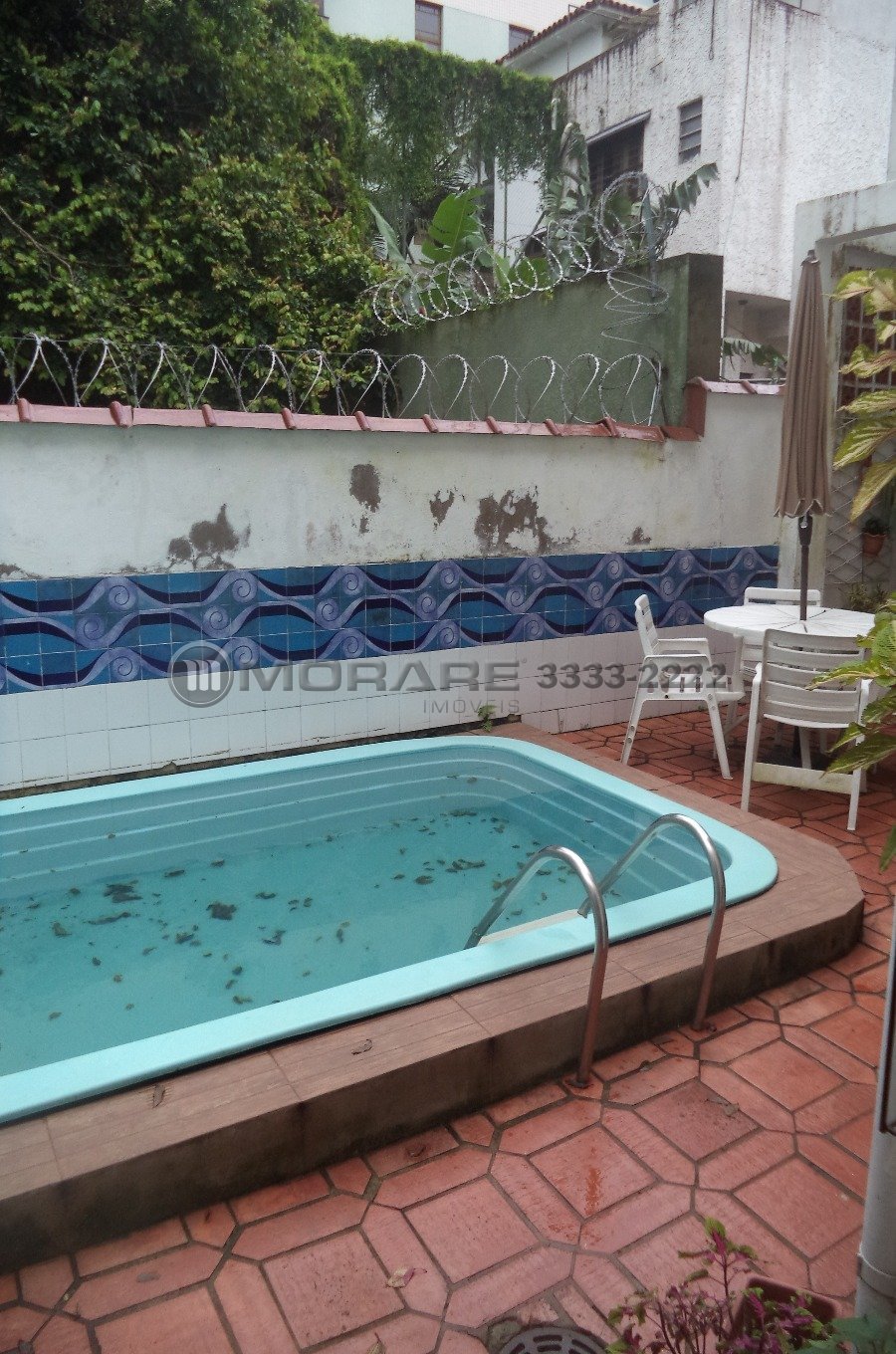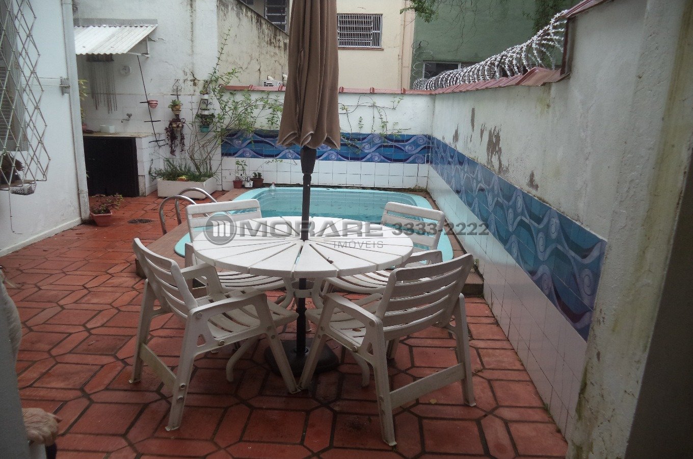 1º pavimento: sala 02 ambientes com lareira, cozinha, área de serviço, wc auxiliar, pátio com piscina.