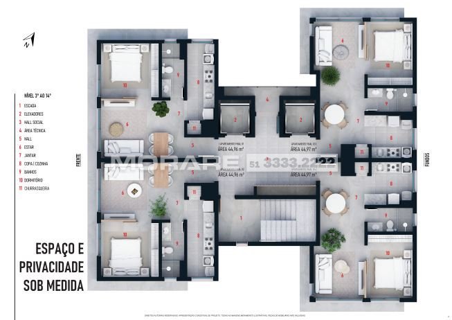 45m² Área Priv.