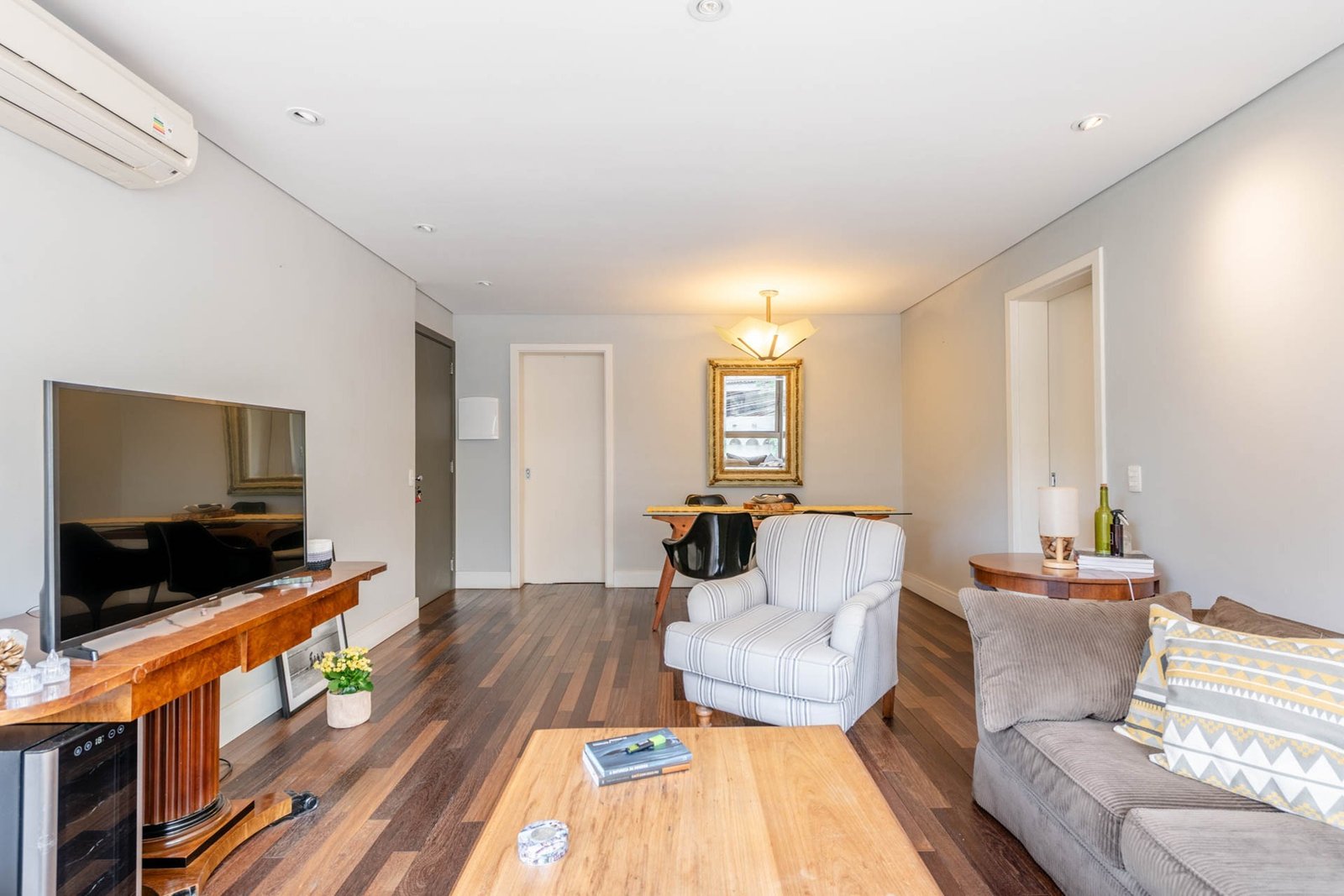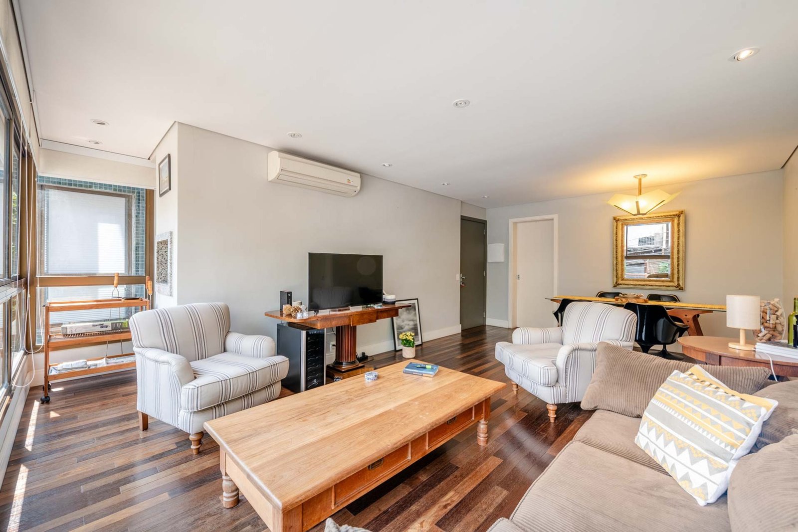 São 3 dormitórios transformado em 2 sendo 1 suíte, amplo terraço com jacuzzi, living 2 ambientes com espaço gourmet, churrasqueira, cozinha montada, ótima lavanderia e terraço privativo.