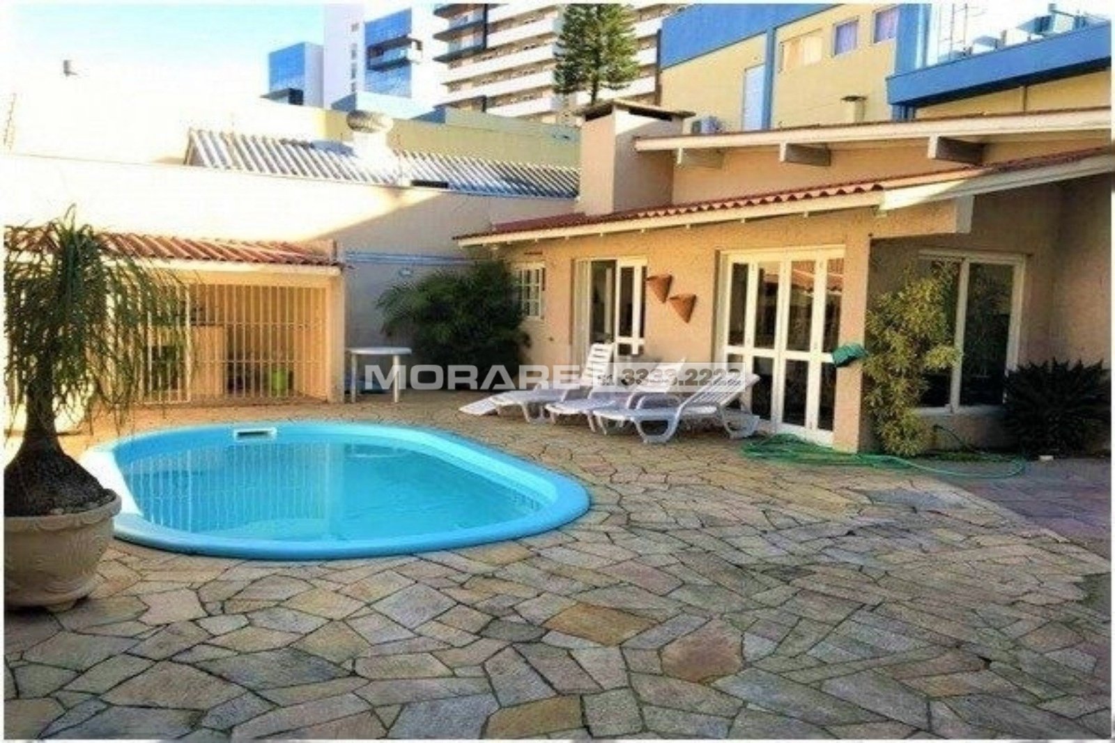 Casa de 2 andares com 4 dormitórios, living 2 ambientes com lareira, sala de jantar, estar íntimo, copa cozinha, lavanderia, depósito, pátio com piscina e salão com churrasqueira.