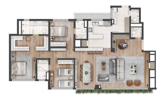 Conectado à natureza! Além do verde do bairro, o projeto tem paisagismo pensado para promover a conexão dos moradores com a natureza dentro do apartamento e em todas as áreas do condomínio.