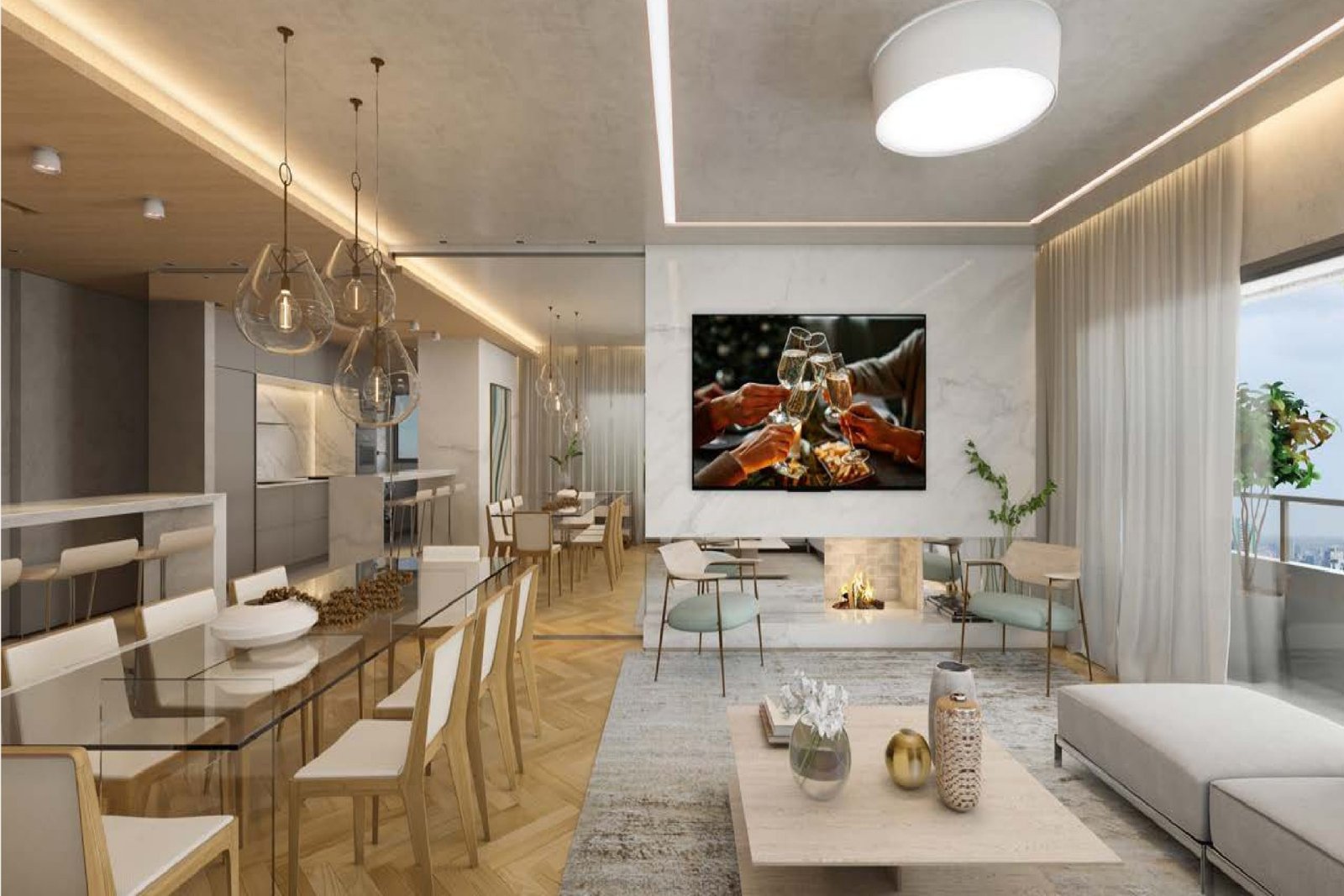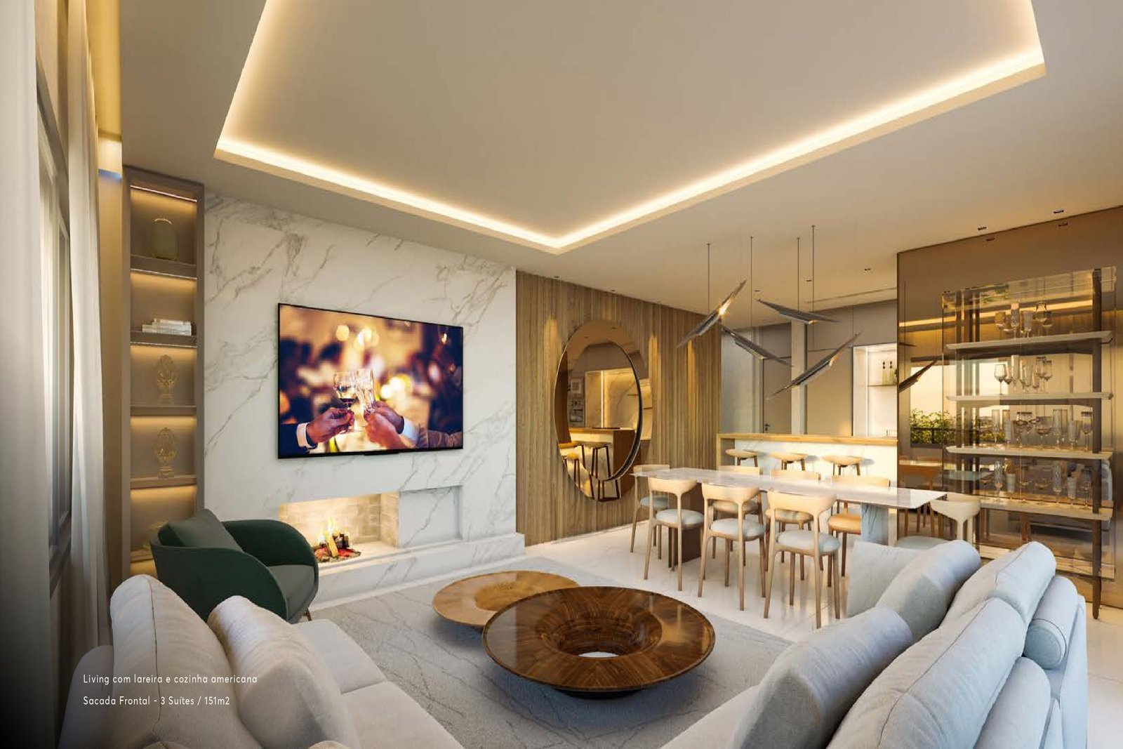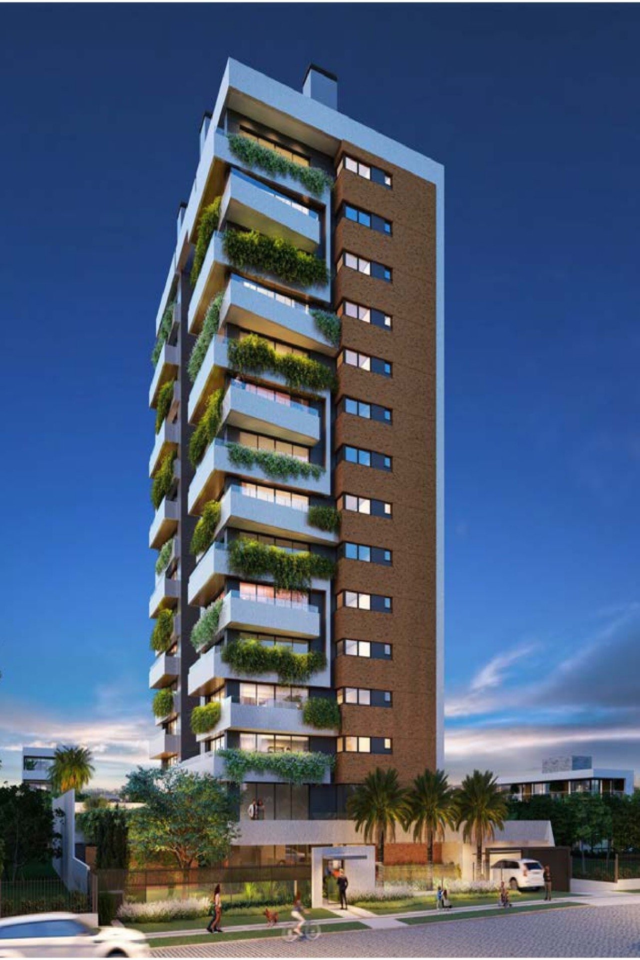 Apartamentos alto padrão com 151m², 3 suítes, living 2 ambientes, lavabo, churrasqueira, lareira, sacada, cozinha, área de serviços e 2 ou 3 vagas de garagem.