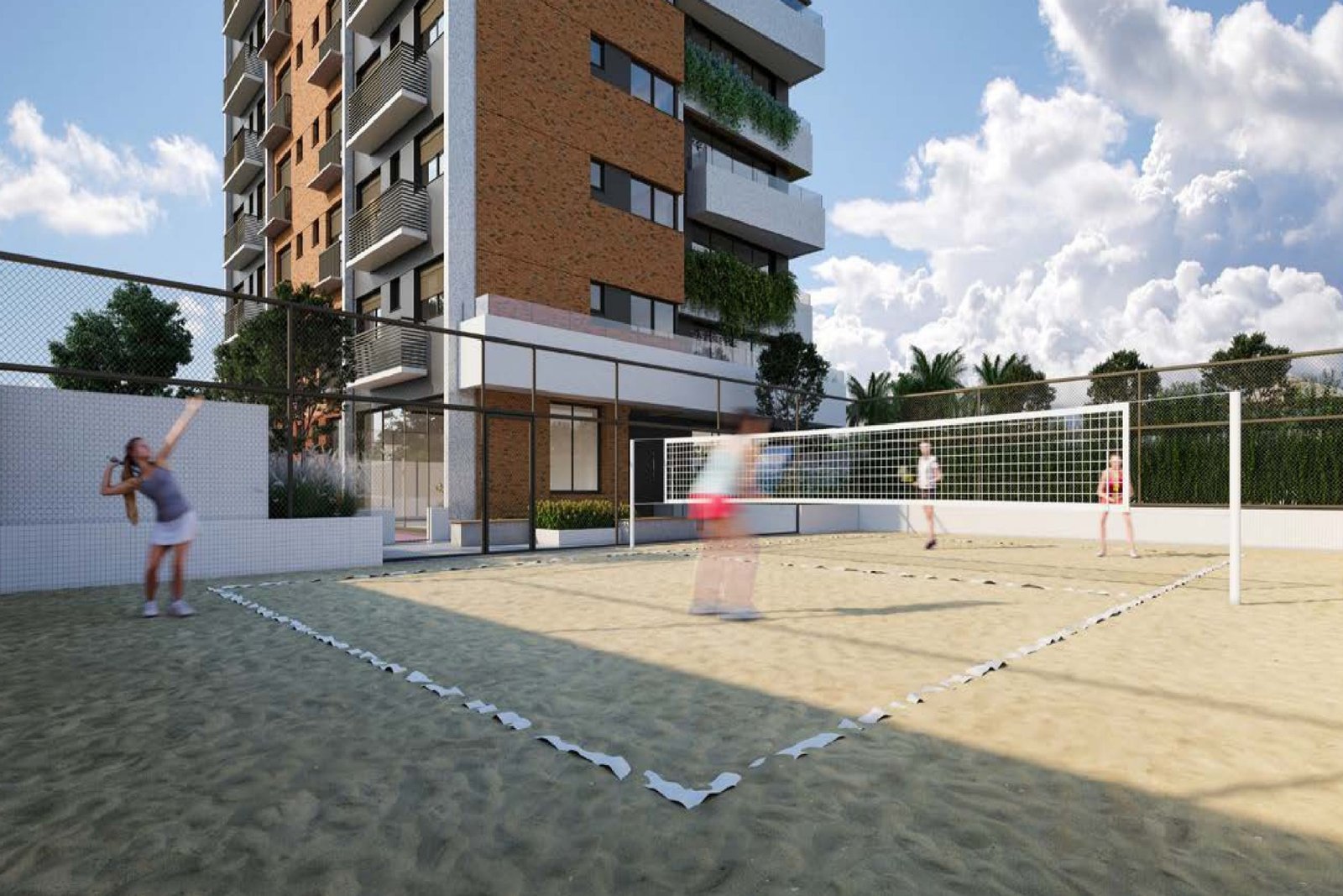 Edifício com coworking, salão de festas, fitness totalmente equipado, espaço kids, quadra de Beach Tennis, piscina adulto e infantil.