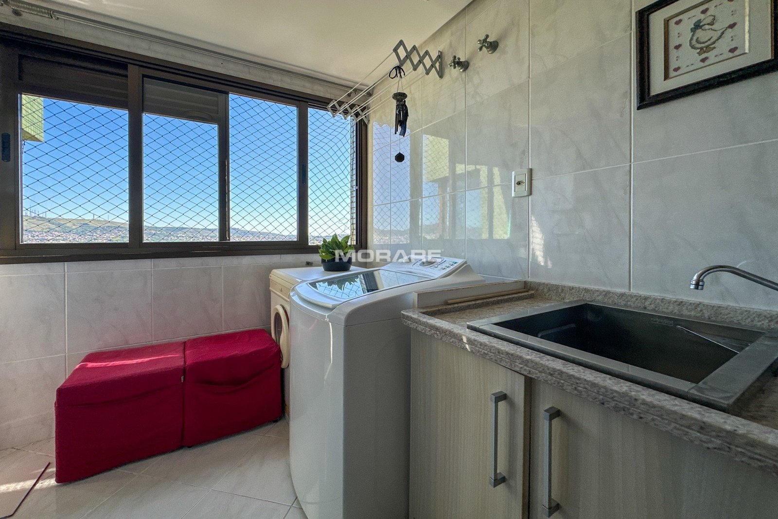 São 2 dormitórios sendo 1 suíte, com área privativa diferenciada, living 2 ambientes com churrasqueira, lareira, sacadão com vista deslumbrante, cozinha montada e área de serviço separada.