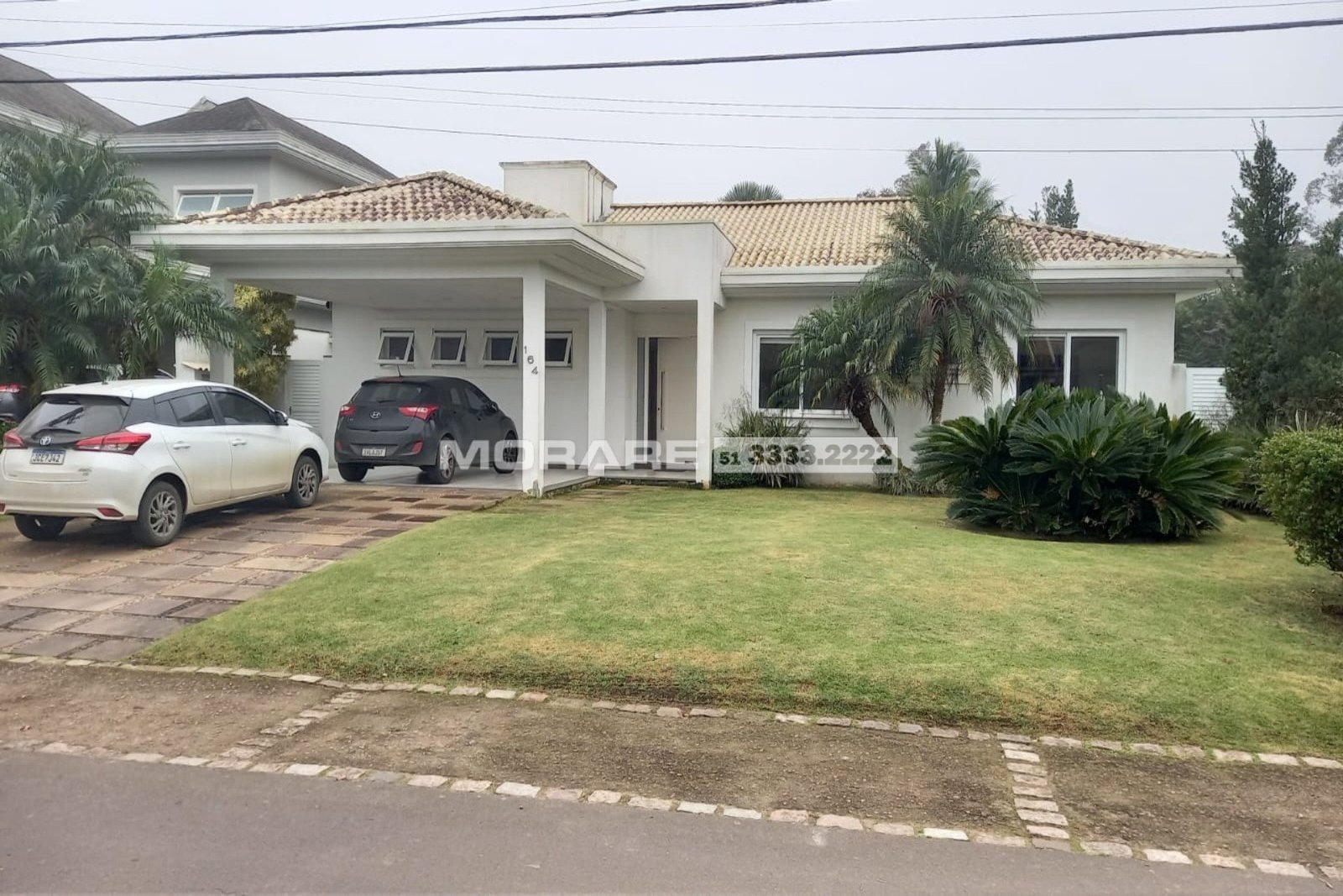 Garagem coberta para 2 carros e mais 2 carros atrás.