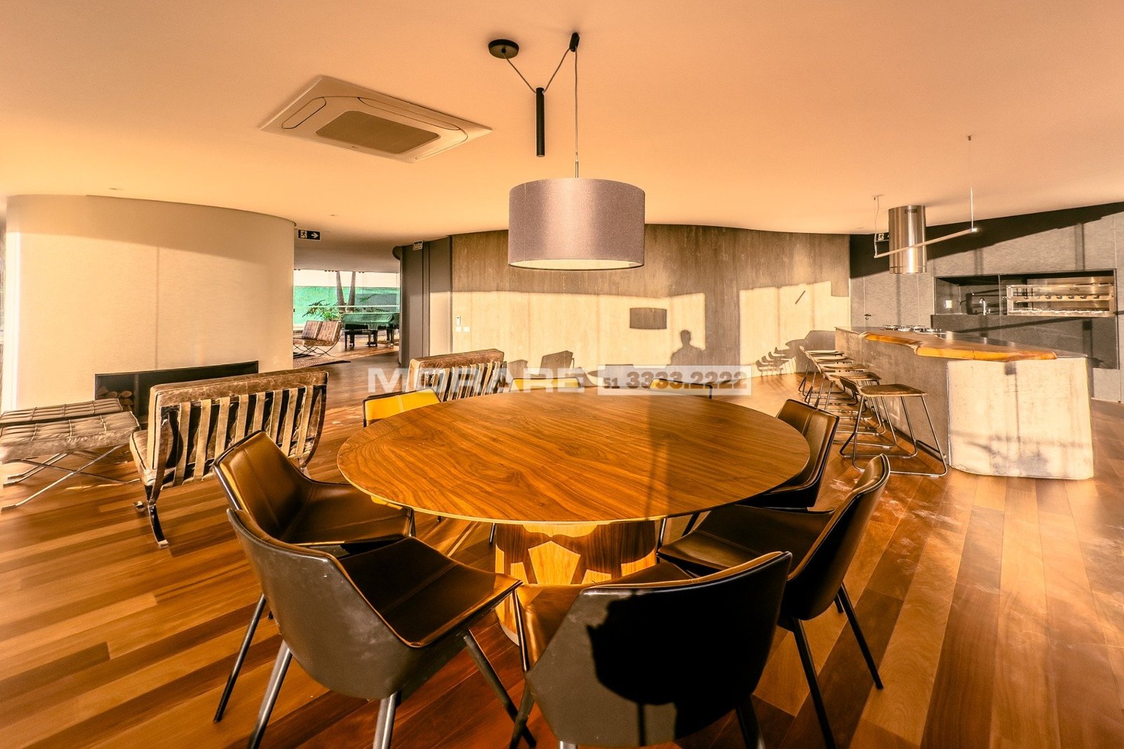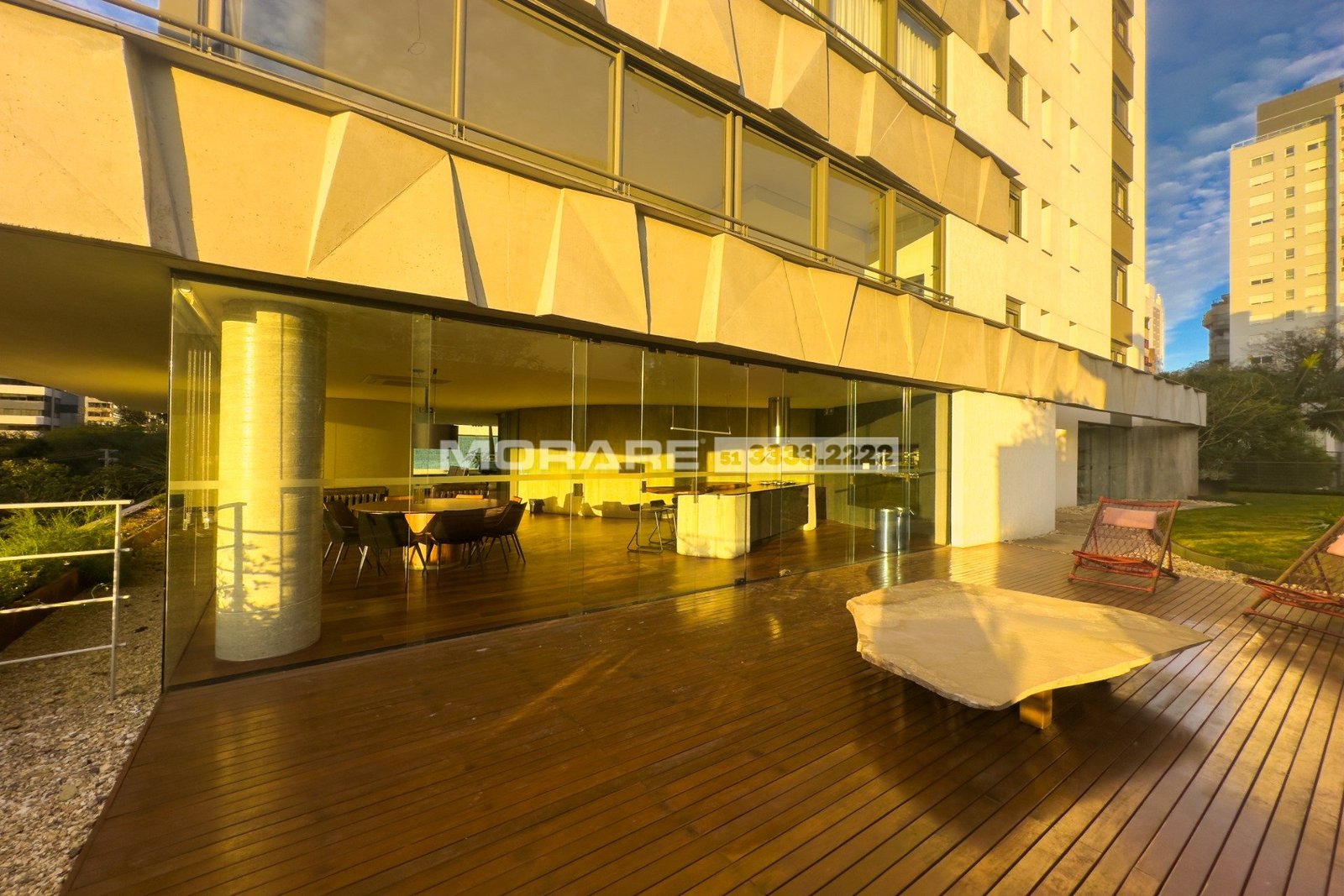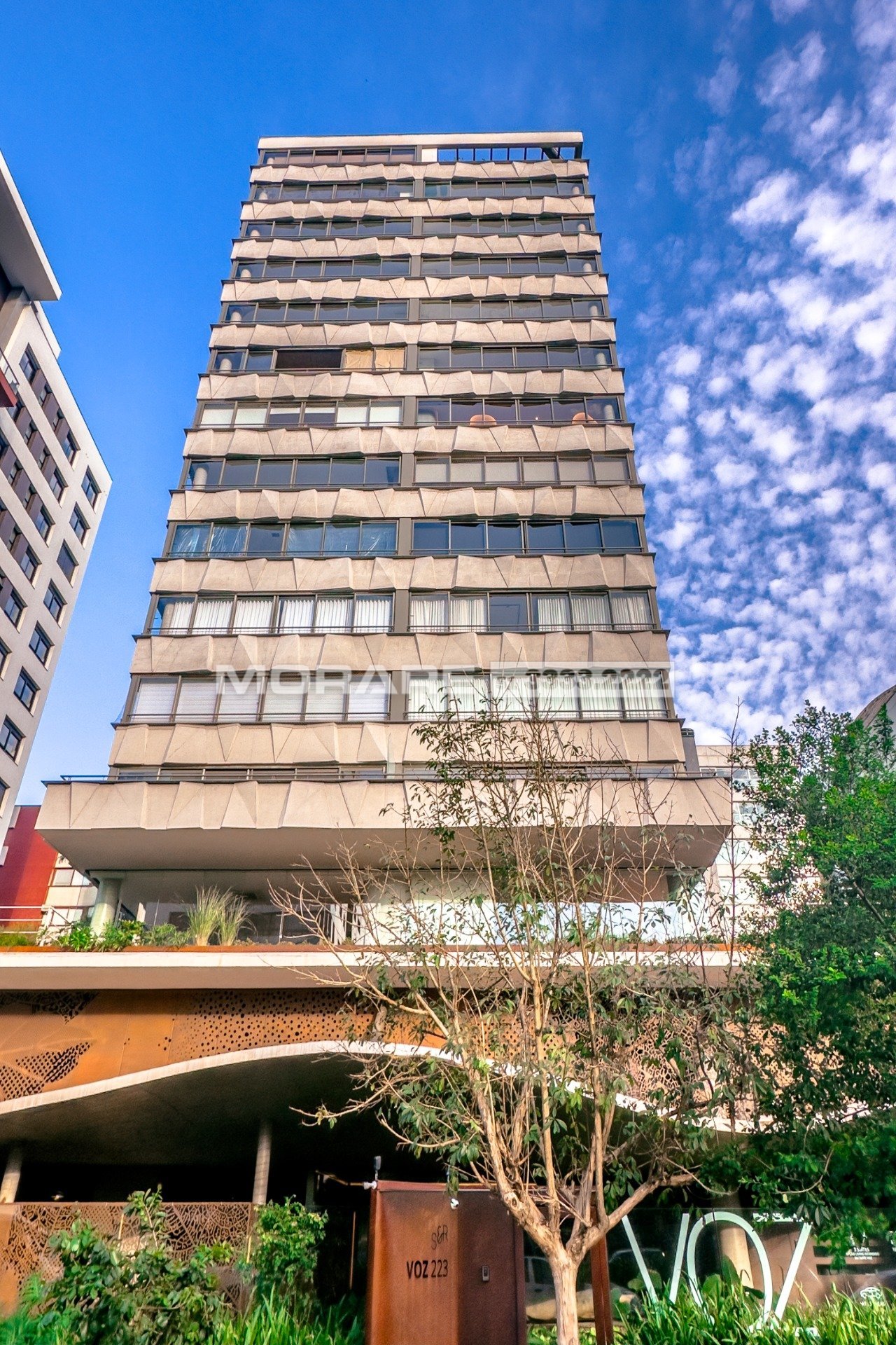 Os espaços de convívio foram elevados ao terceiro pavimento. O Foyer Voz tem projeto de interiores assinado por Ingrid Stemmer e traz generosos espaços, abertos para que o som a preencha e vizinhos se encontrem. Traz espaço gourmet, jantar e living integrados. O mobiliário destaca ícones do design nacional, como Aristeu Pires e Guilherme Wentz.