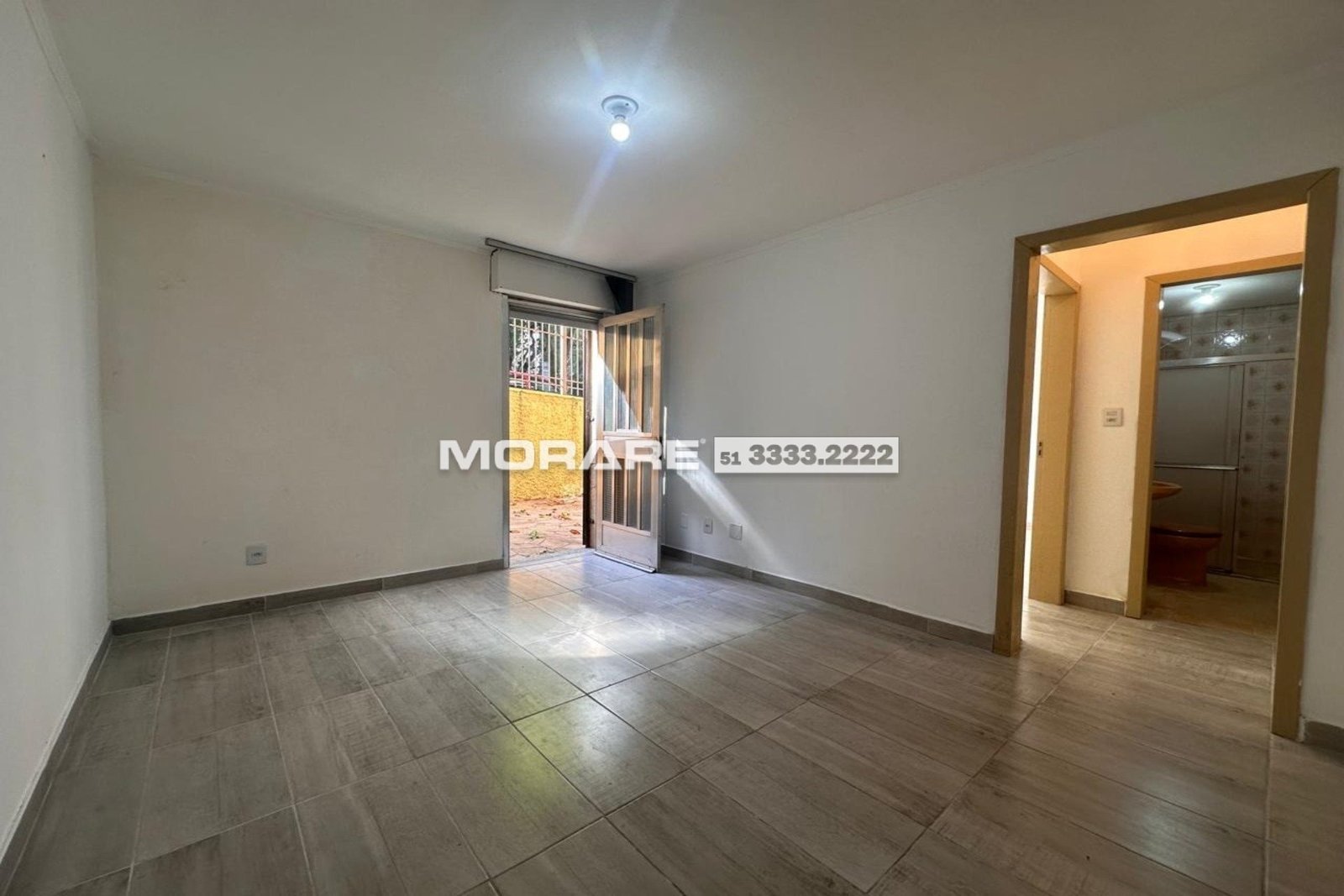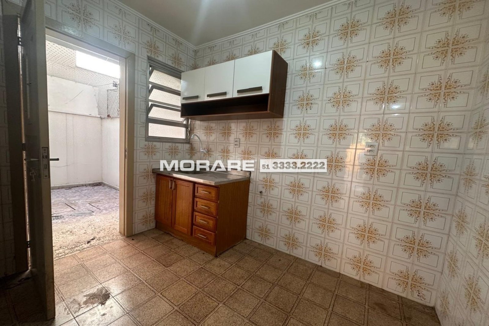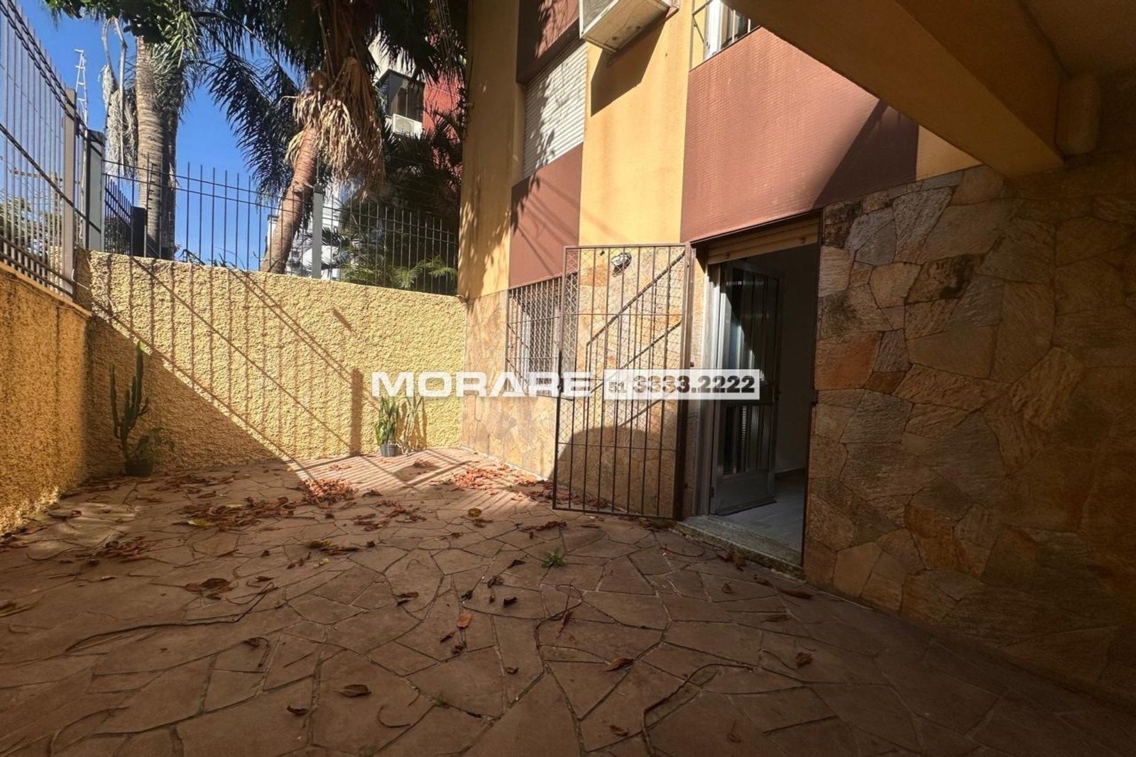 1 dormitório com pátio externo integrando no living e outro pátio na área de serviço. Tem um lance de escada. Dormitório de bom tamanho e banheiro com ventilação direta.