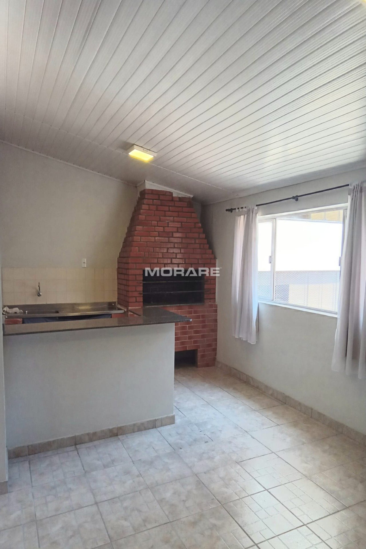 Tem um terraço na parte superior para banho de sol, secar roupas e salão de festas com churrasqueira.