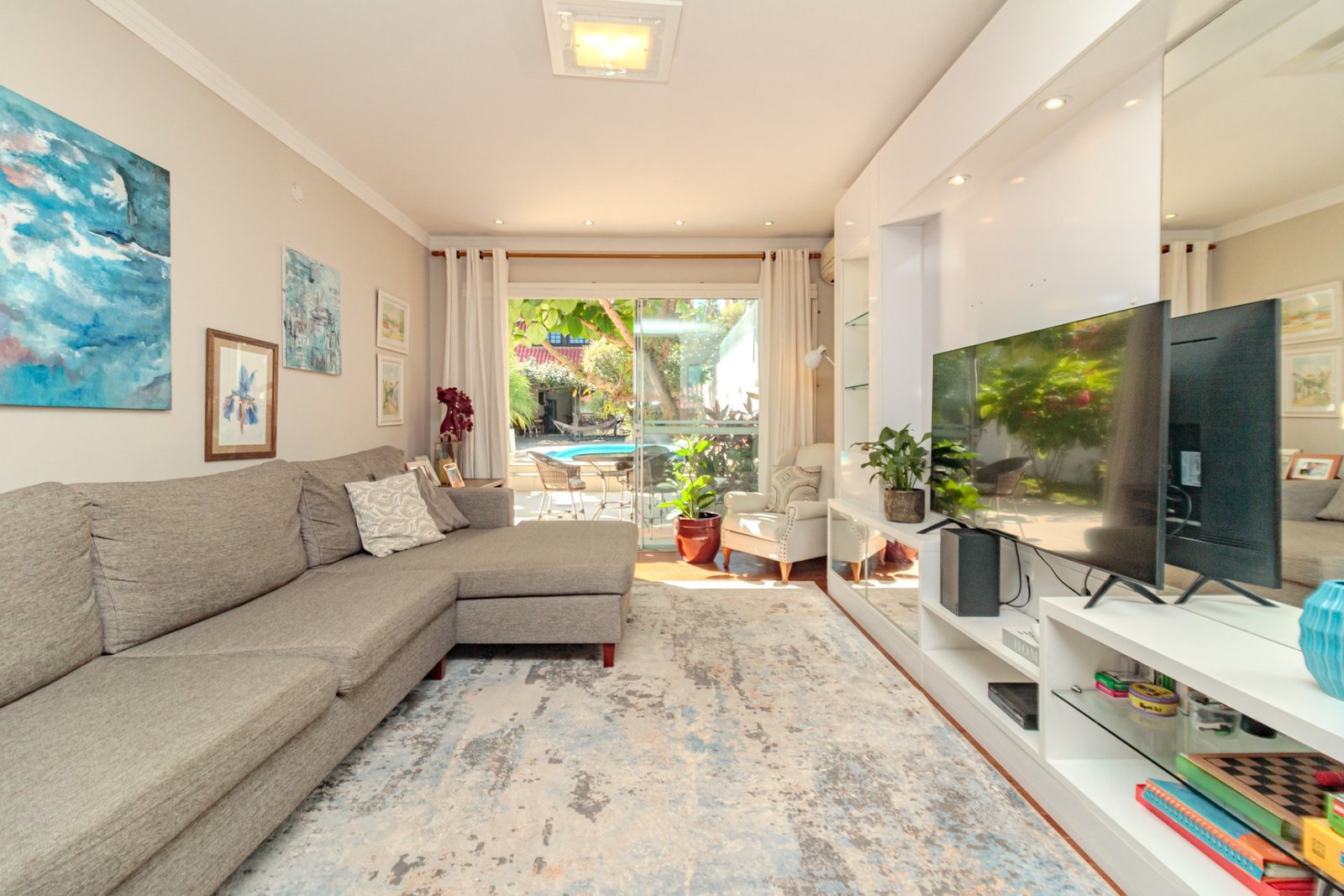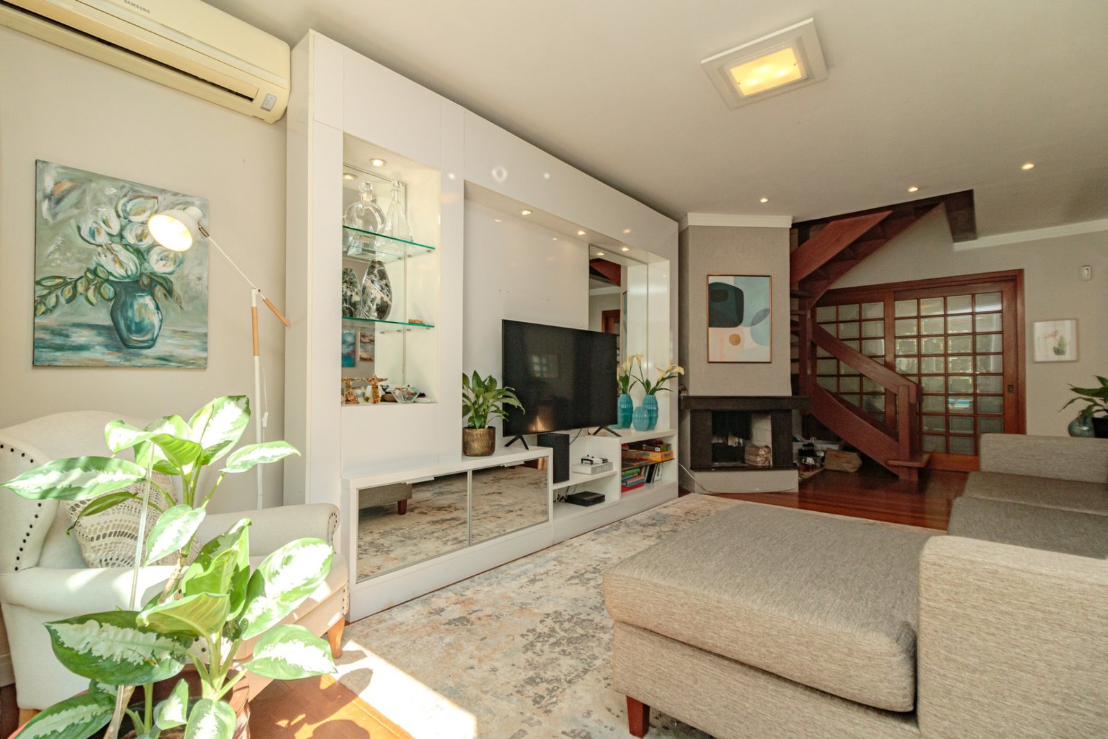 Com 288m2 de área privativa, living amplo para 2 ambientes com lareira, churrasqueira, lavabo, sala de TV e jantar, cozinha americana, área de serviço separada.