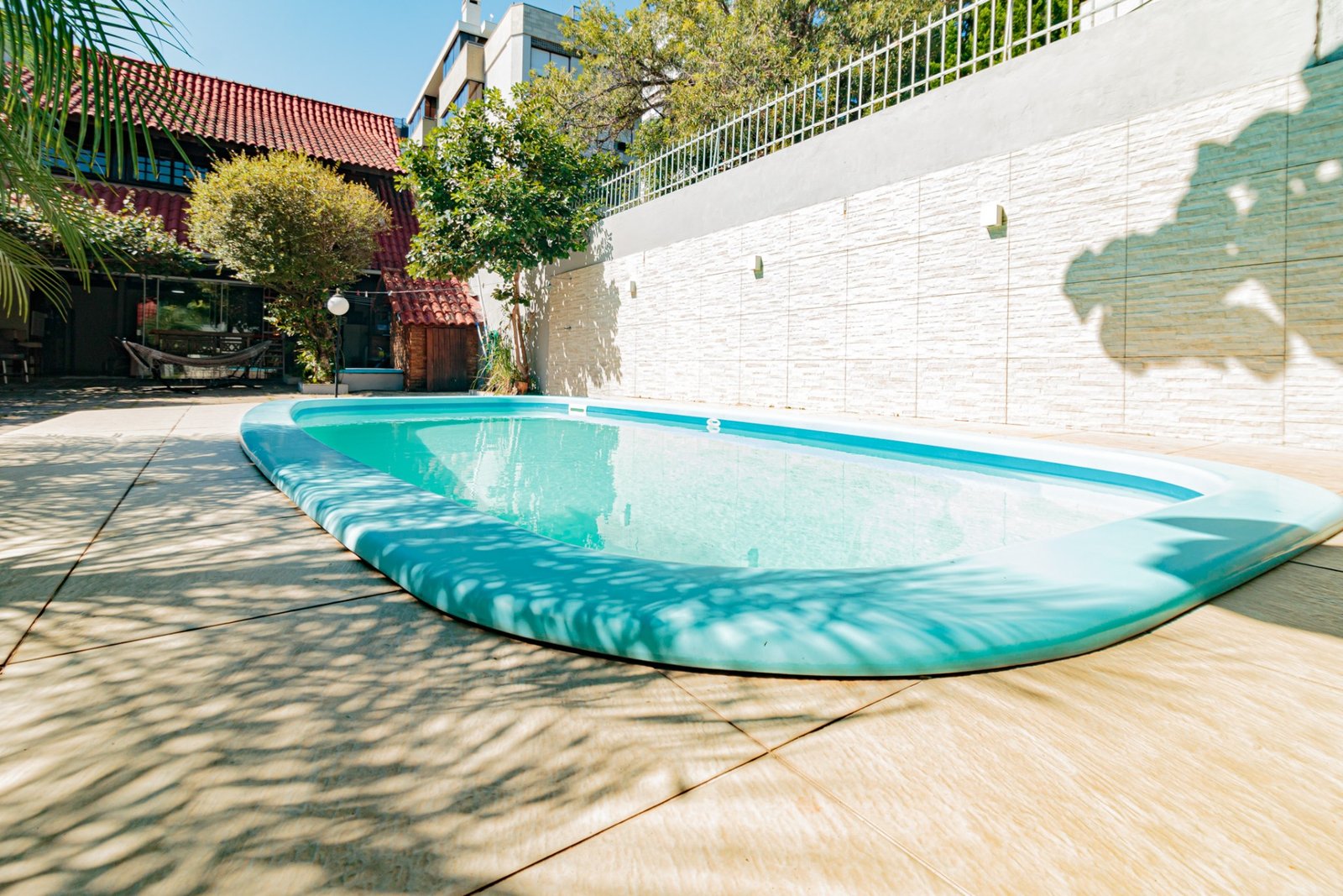 Ótimo pátio com piscina, parte inferior toda área social e superior parte íntima.