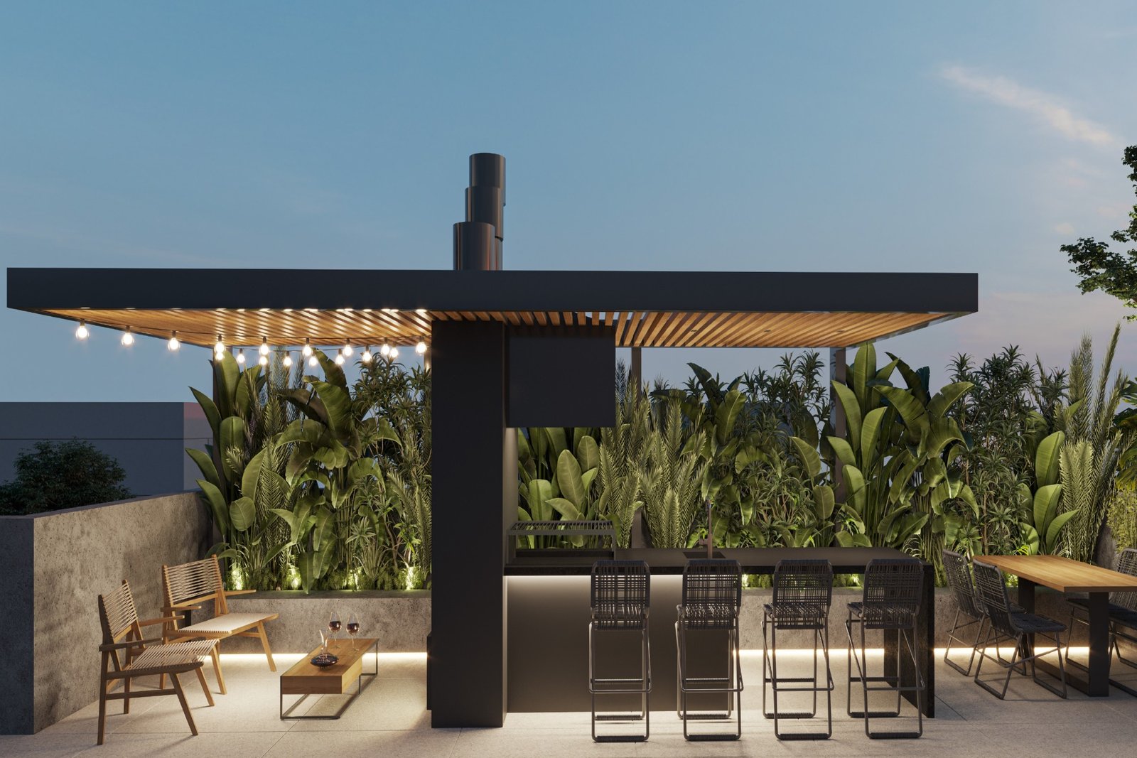 Conta com áreas comuns multifuncionais que estimulam encontros, bem-estar e contemplação: rooftop com piscina, parrilla, lareira, lounges e espaços de convívio que se adaptam ao seu estilo de vida.
