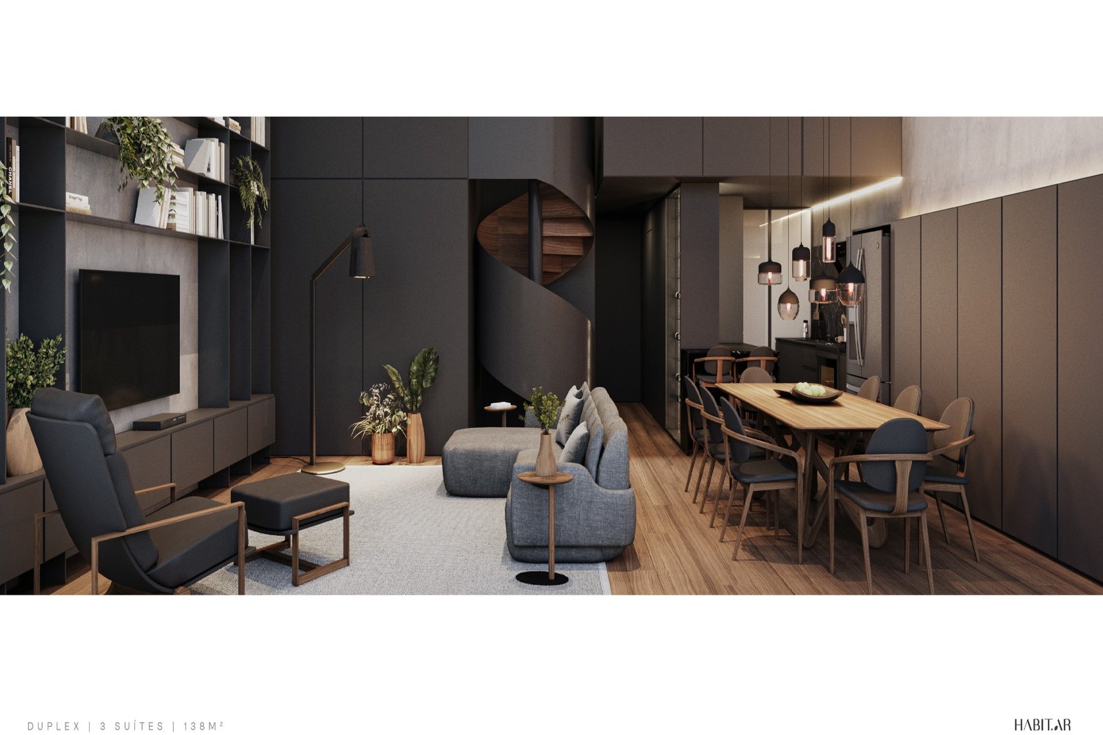 A cobertura duplex do Habit.ar é a definição de exclusividade. Com 130,43m² privativos, essa unidade possui 3 suítes, living amplo e integrado, lavabo, cozinha com área de serviço separada e espaços externos ideais para receber e relaxar.
