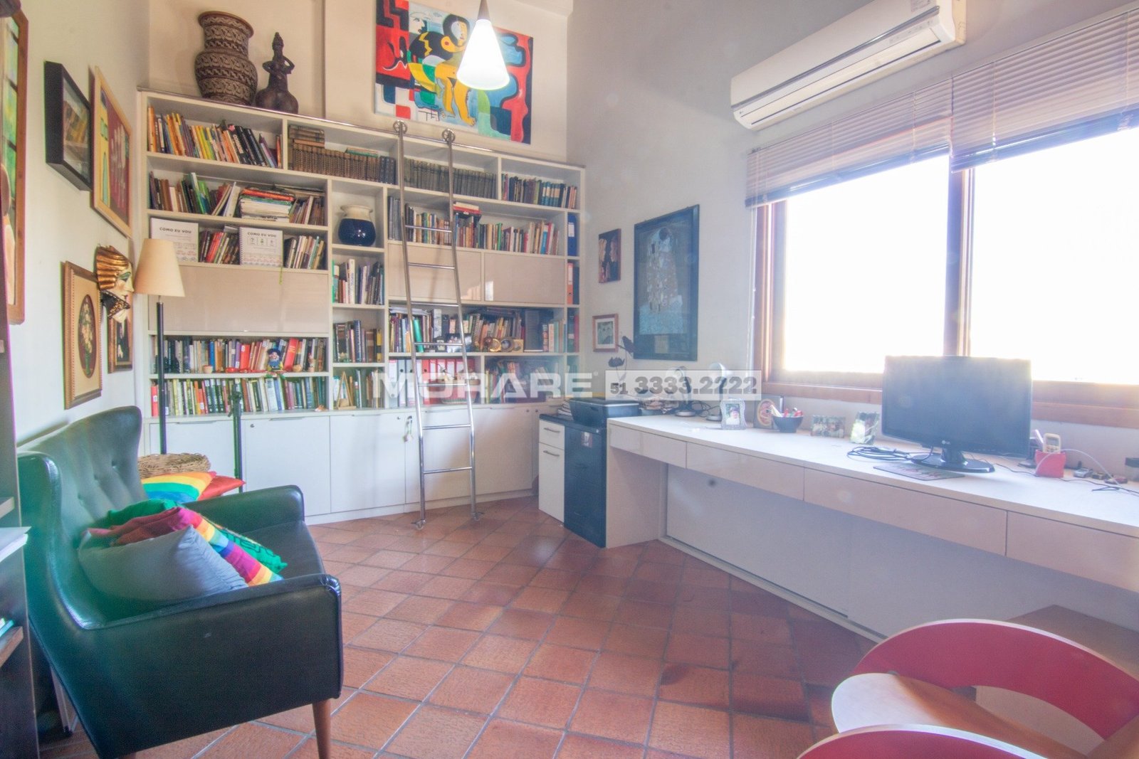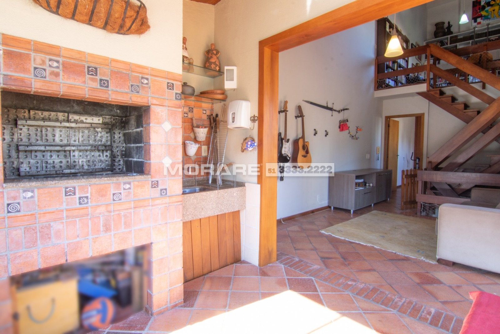 Piso superior, escada em ?L? moderna, estar com churrasqueira, 1 dormitório, lavabo, terraço, no mezanino tem um ótimo gabinete, posição solar Leste, Norte.