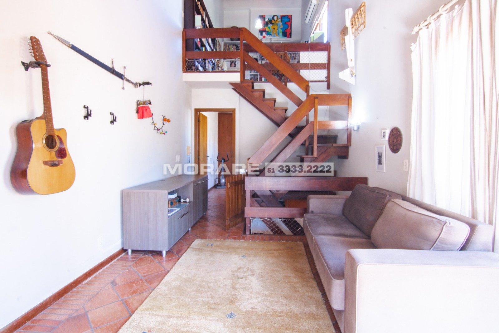 Piso inferior, 2 dormitórios com 1 suíte, living para 2 ambientes, banheiro social, cozinha, área de serviço.
