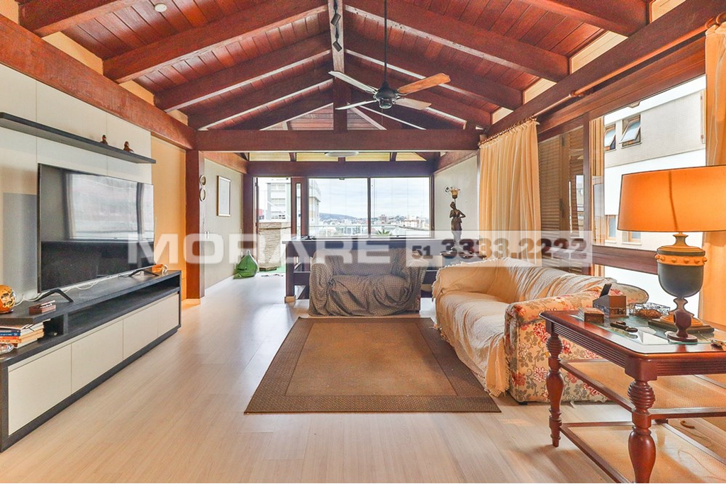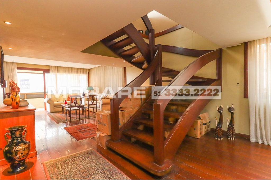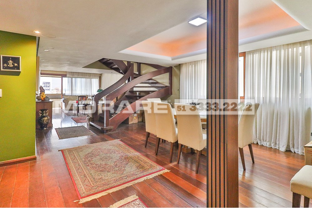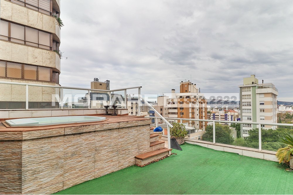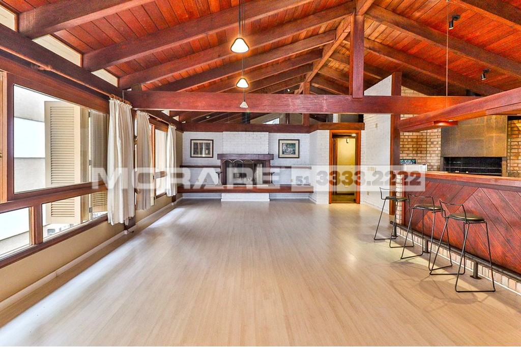 Cobertura com cara de casa em bairro nobre de Porto Alegre, em edifício pequeno com apenas 3 moradores, elevador, gás central e vídeo porteiro controlado pela TV ou celular. O imóvel oferece muito espaço social com living em tabuão com lareira e varanda, cozinha ampla com mesa de refeições, lavanderia e dependência completa, além de 4 dormitórios amplos, incluindo suíte com closet e espaçoso quarto de banho. A escada em madeira nobre de dois lances é um destaque arquitetônico e de design. A parte superior lembra uma casa da Serra, com detalhes em madeira de lei, 2 terraços sendo um frontal com jacuzzi e outro maior com lavanderia e banheiro de apoio, além de salão de festas com vários layouts, bar em madeira com cozinha americana, churrasqueira com acabamento exclusivo, lareira e mais um ambiente que pode ser utilizado como 5º dormitório, escritório, academia ou atelier. Conta ainda com garagem para 2 veículos grandes, depósito e acessibilidade para cadeirante. O condomínio fechado garante segurança e privacidade, com câmeras de vigilância e interfone. Localização privilegiada próxima ao Grêmio Náutico União, Zaffari da Carazinho, academias, armazéns, padarias, pet shops e avenidas Carlos Gomes e Protásio, reunindo praticidade, exclusividade e bem-estar em um imóvel único. Preço e disponibilidade do imóvel sujeitos a alteração sem aviso prévio.