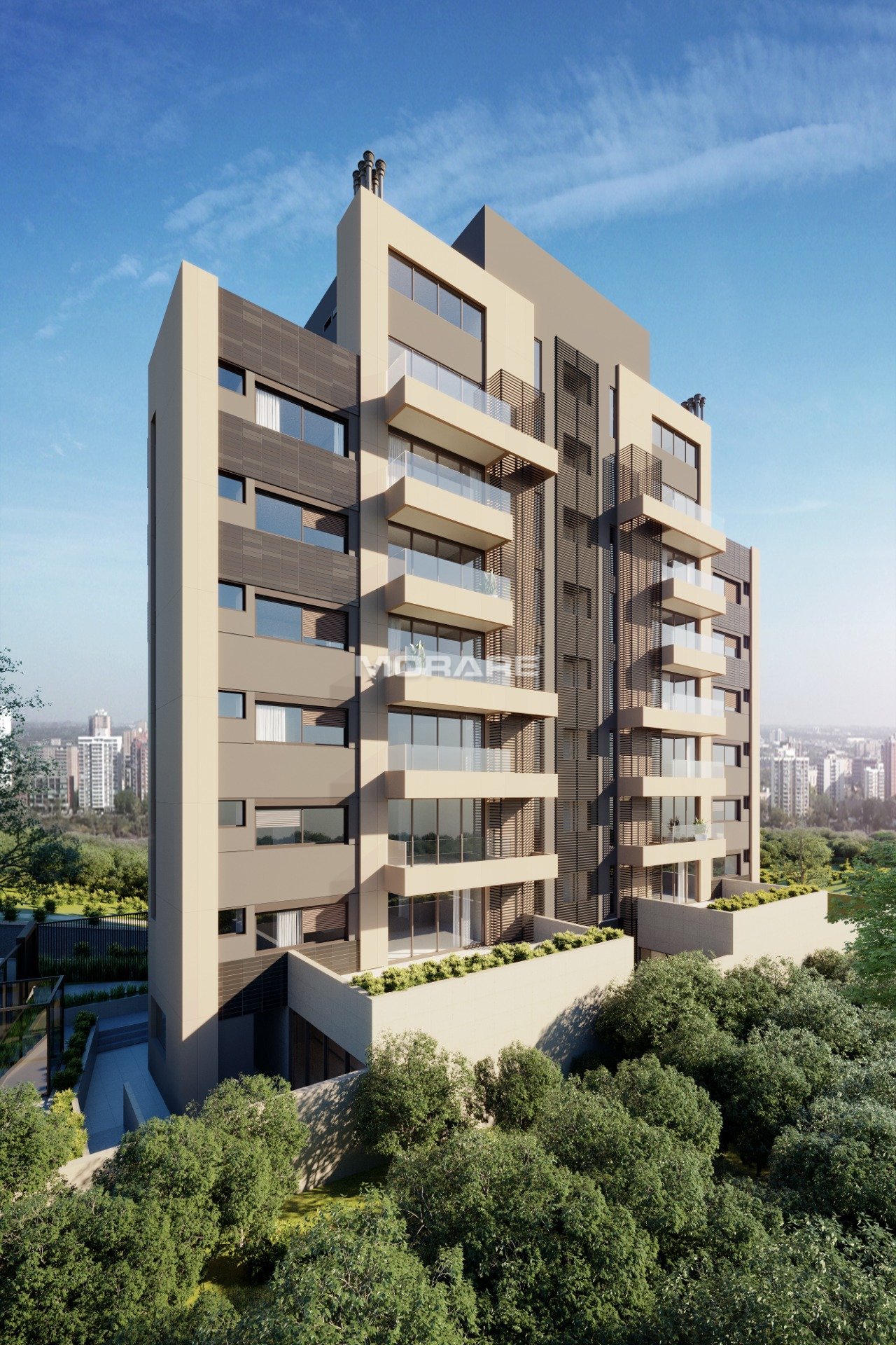 Unidades contam com hall privativo e sacada com vista para o Colégio Anchieta.