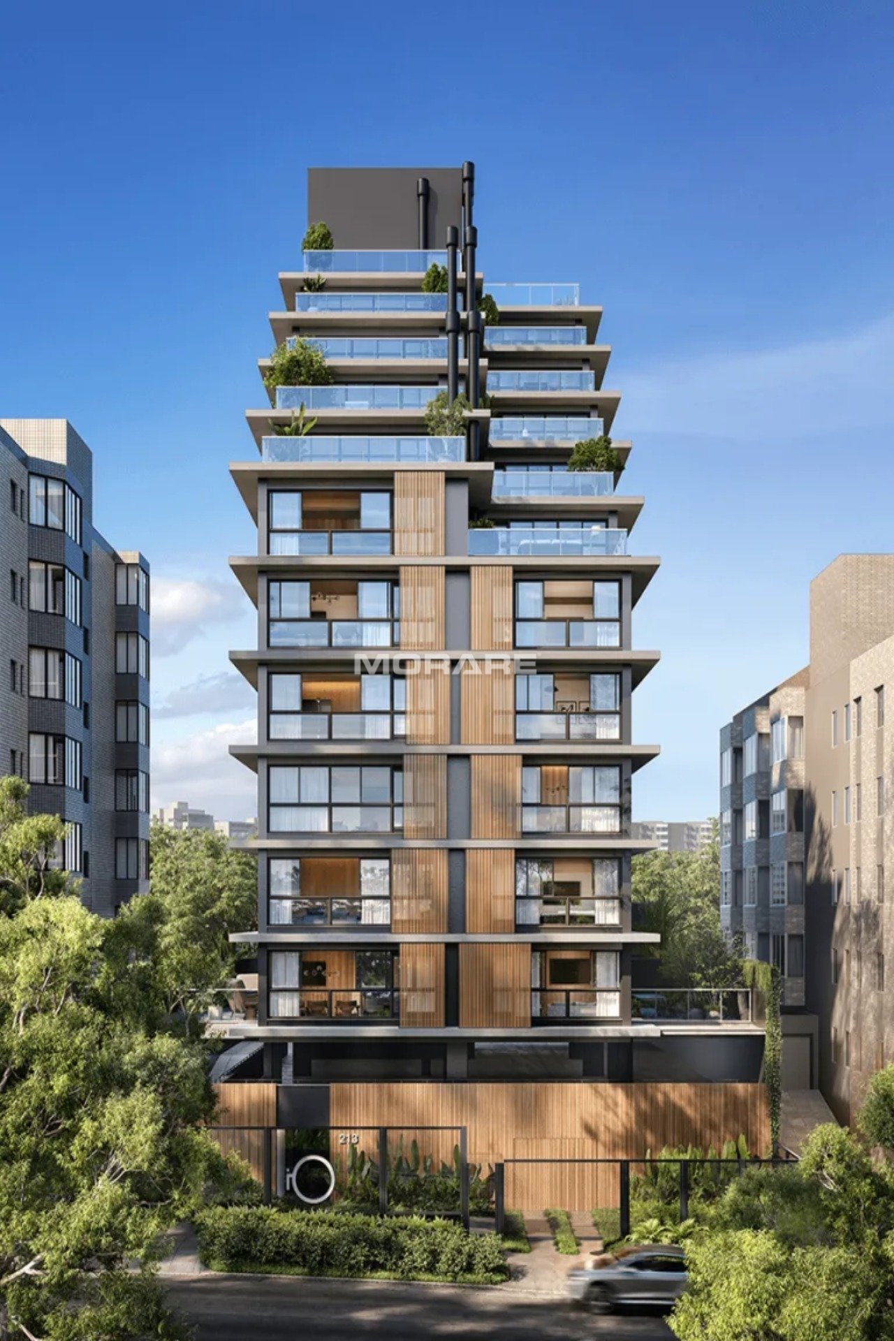 A fachada escalonada dá personalidade a um projeto todo pensado para o bem-estar dos moradores. As minicoberturas são ampliadas com a presença de espaços flexíveis e integrados, presentes nos andares altos.