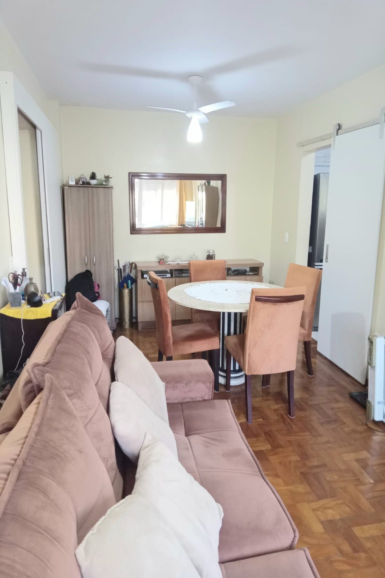 Com 77m2 de área privativa, Hall de entrada, living para 2 ambientes, banheiro social com ventilação, cozinha com armários, área de serviço separada e dependência completa.