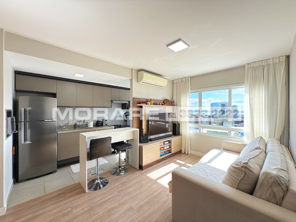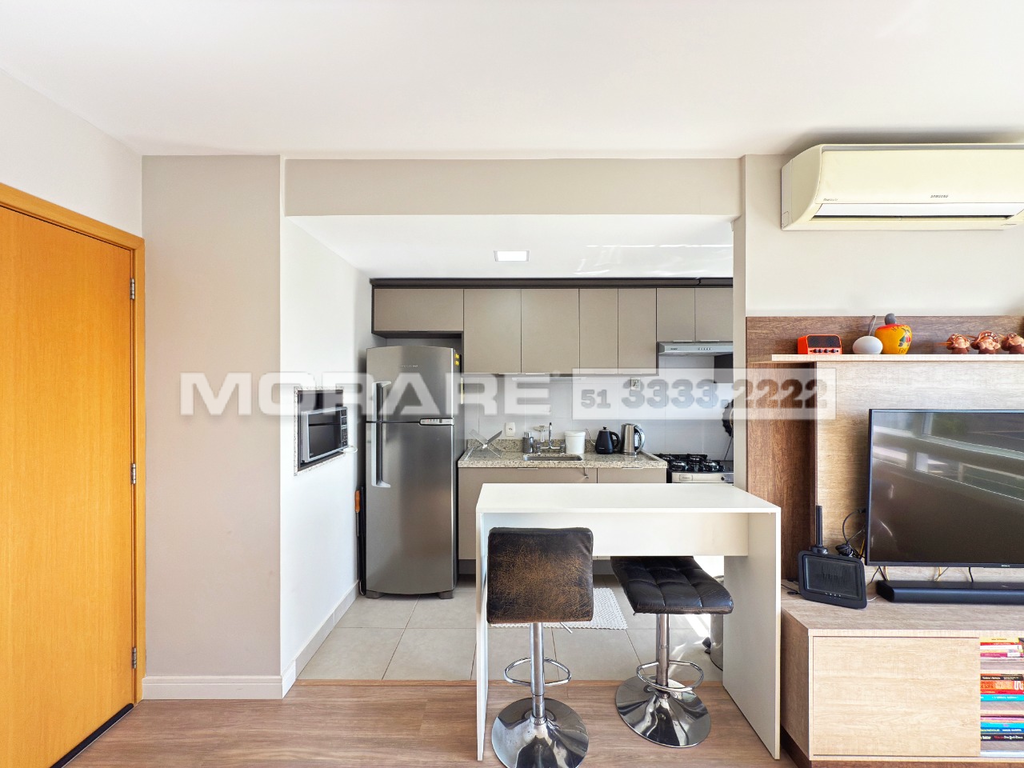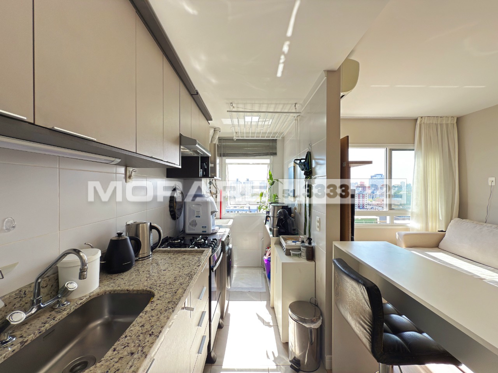 Apartamento semimobiliado de 60,50m2 localizado no bairro Menino Deus. A área social possui estar e jantar integrados à cozinha americana e lavanderia, garantindo praticidade e conforto no dia a dia. São dois dormitórios, sendo uma suíte, além de um banheiro social. Localizado no último andar, o imóvel conta com posição solar oeste e vista panorâmica. Possui vaga dupla, coberta e escriturada, para dois veículos. O condomínio oferece infraestrutura completa, com portaria 24 horas, e está em localização privilegiada, no coração do Menino Deus, próximo ao Zaffari e a diversas conveniências da região. Agende sua visita e aproveite essa oportunidade. Preço e disponibilidade do imóvel sujeitos a alteração sem aviso prévio.