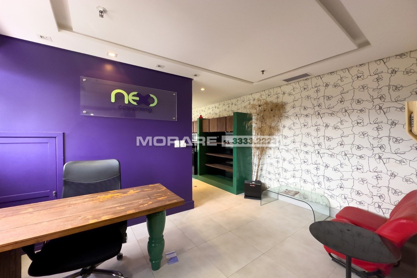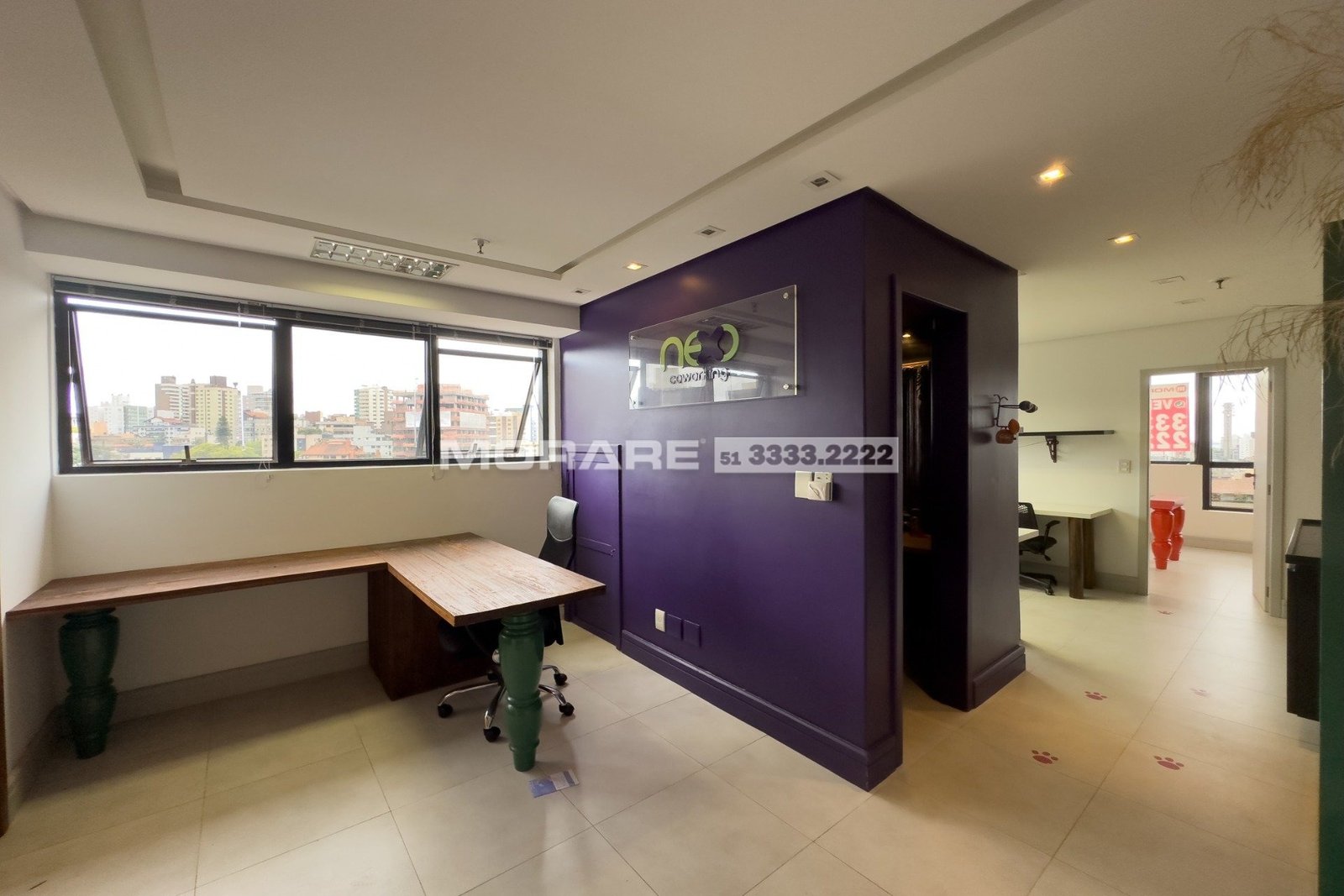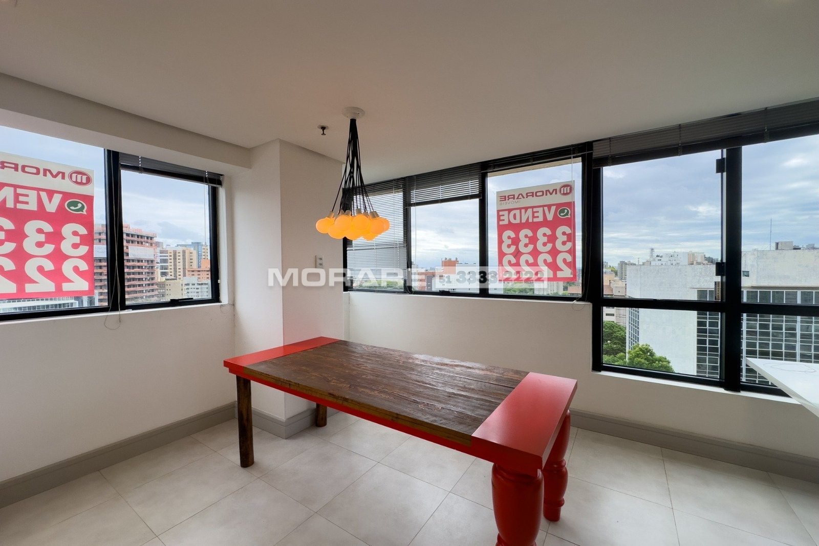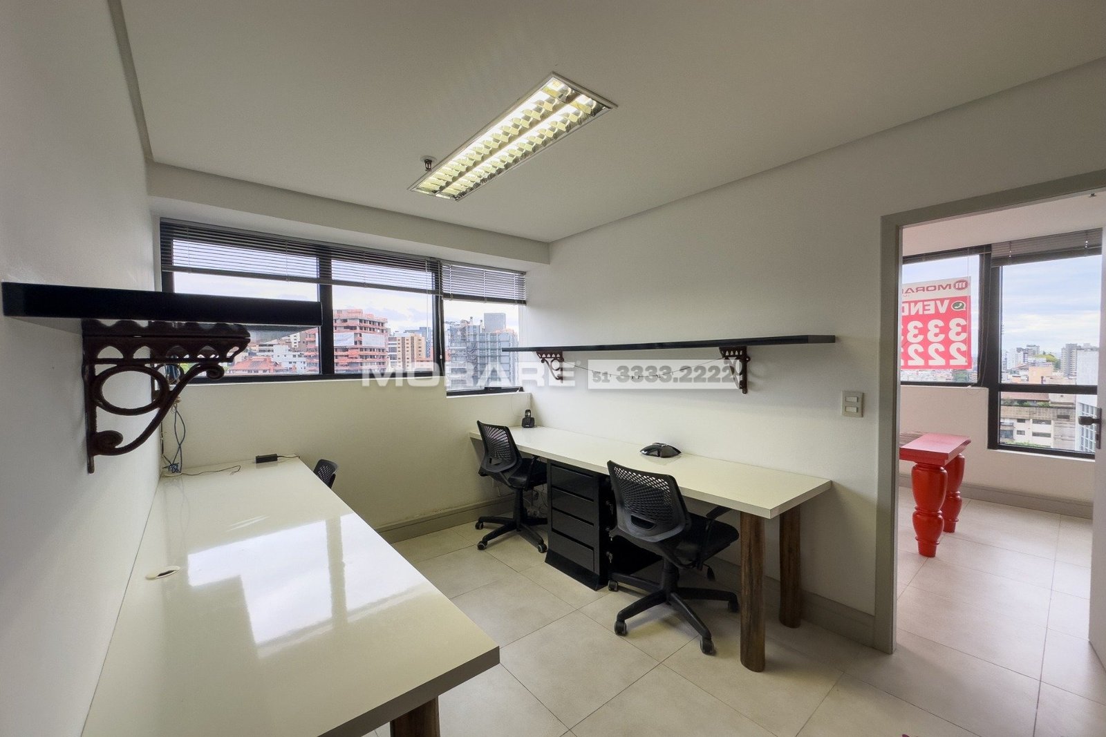 Sala comercial de frente e lateral, com vista privilegiada, semi mobiliada, ficam os móveis fixos. O imóvel está dividido em 3 ambientes e tem vista belíssima do pôr do sol.