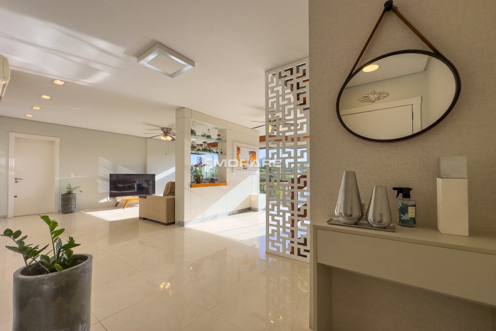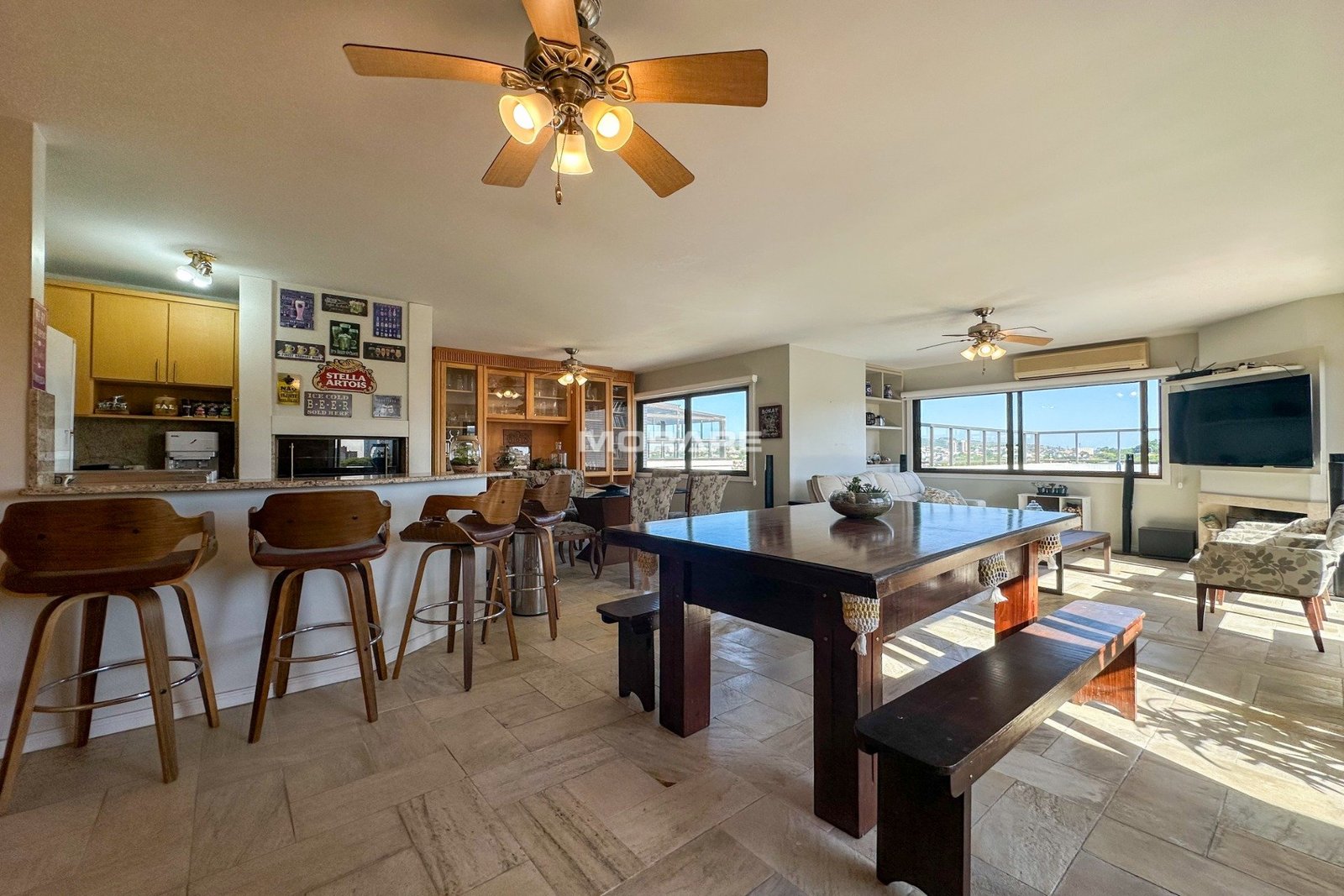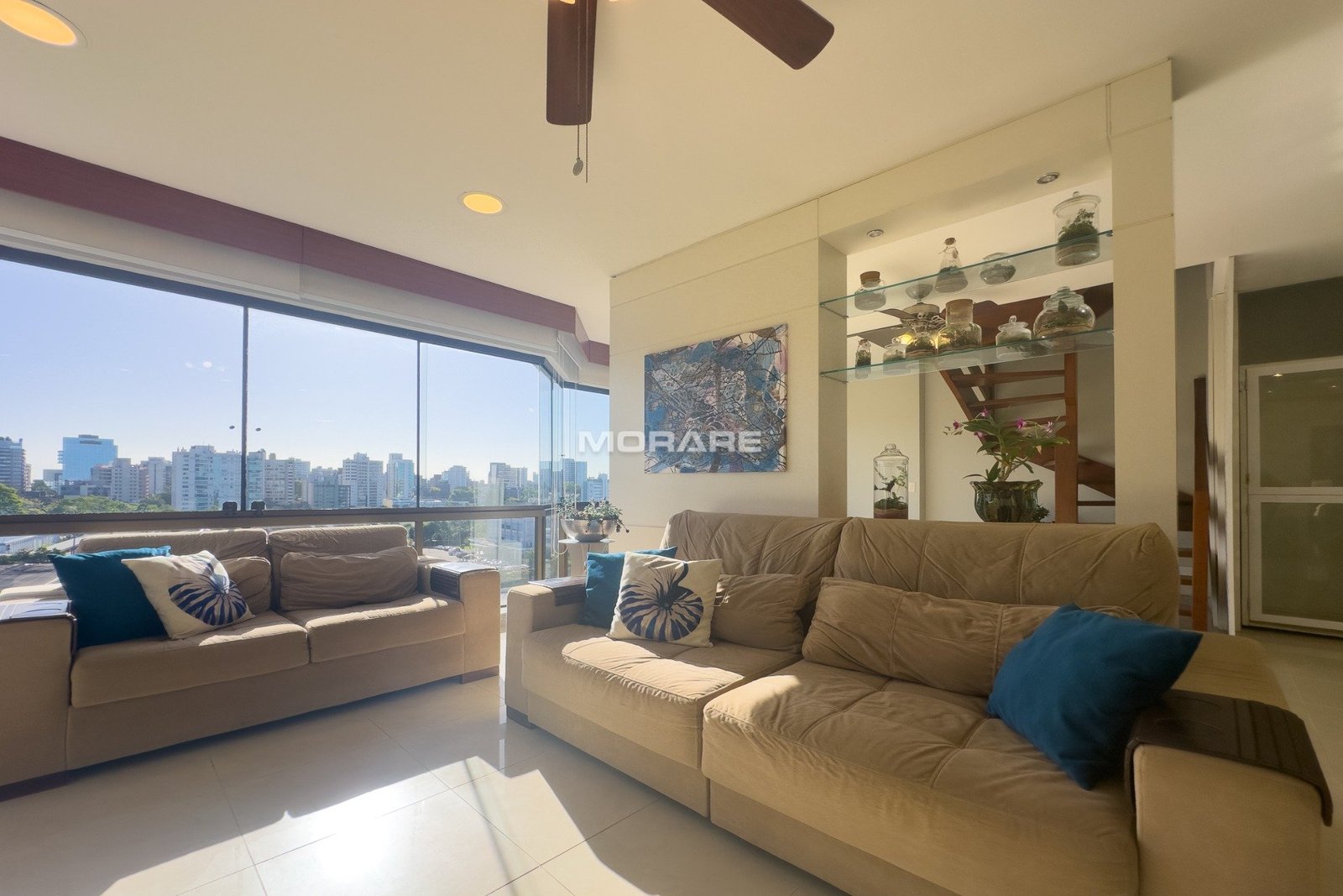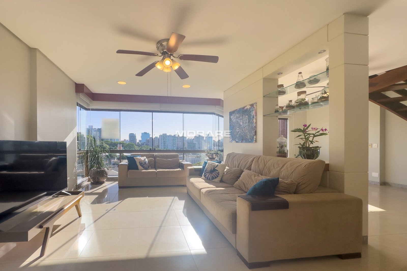 Com 280m2 de área privativa, living 3 ambientes, sacada, lavabo, copa cozinha, área de serviço, escada de madeira em L.