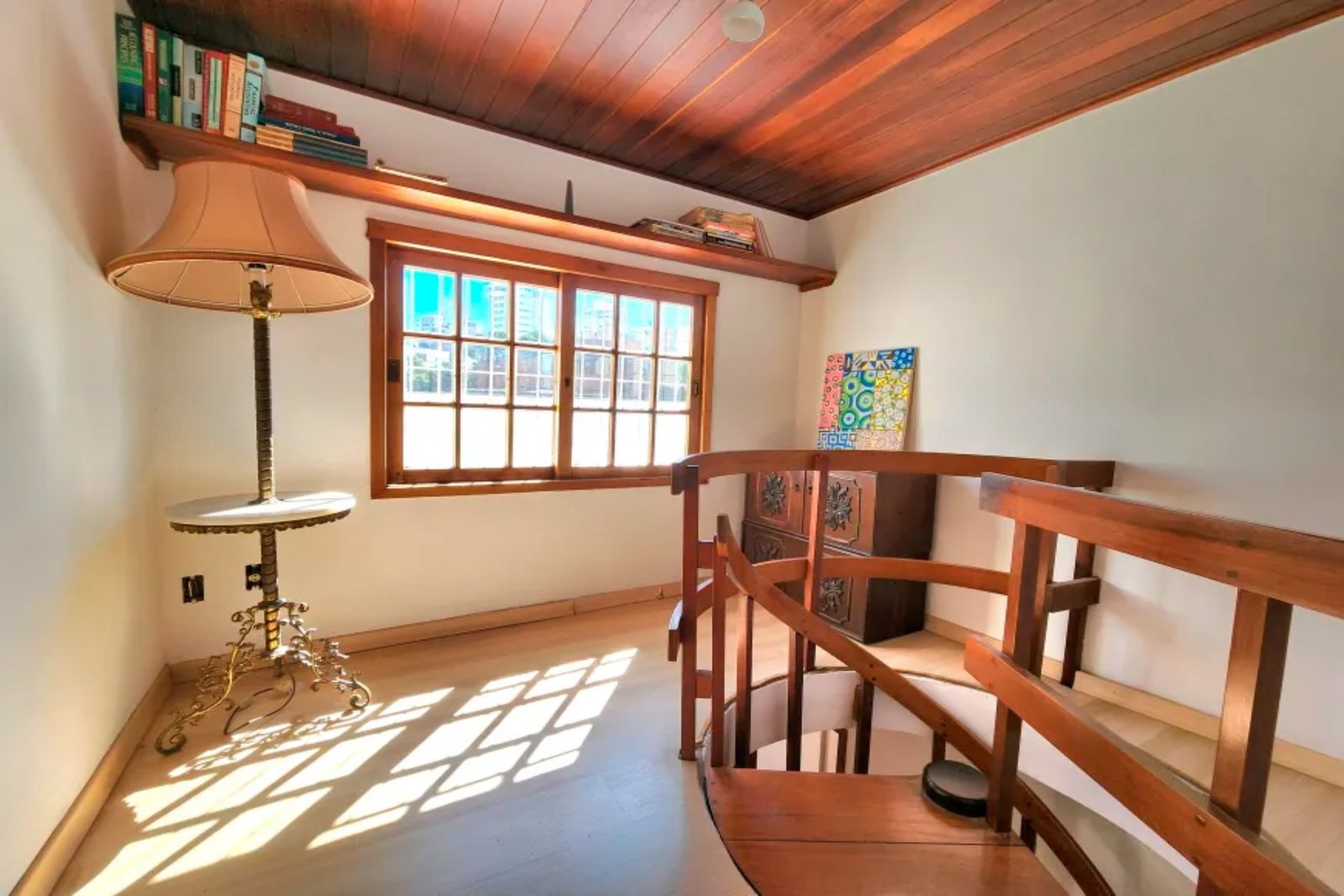 Parte superior, terraço amplo, sala de estar, cozinha com churrasqueira.