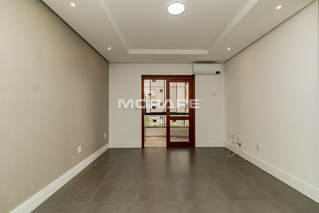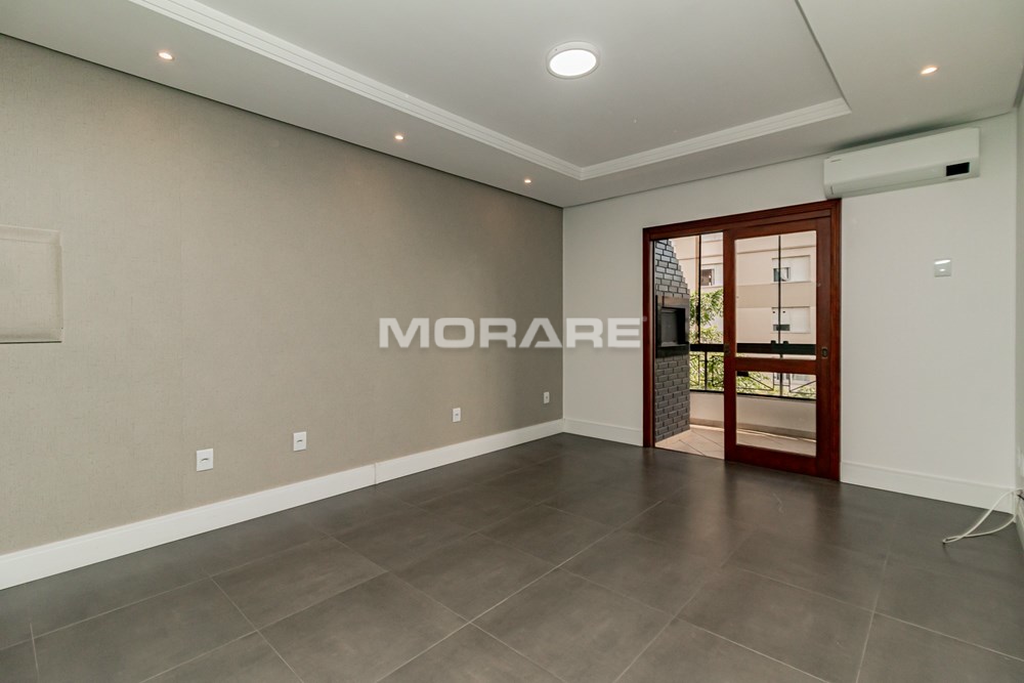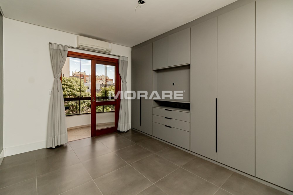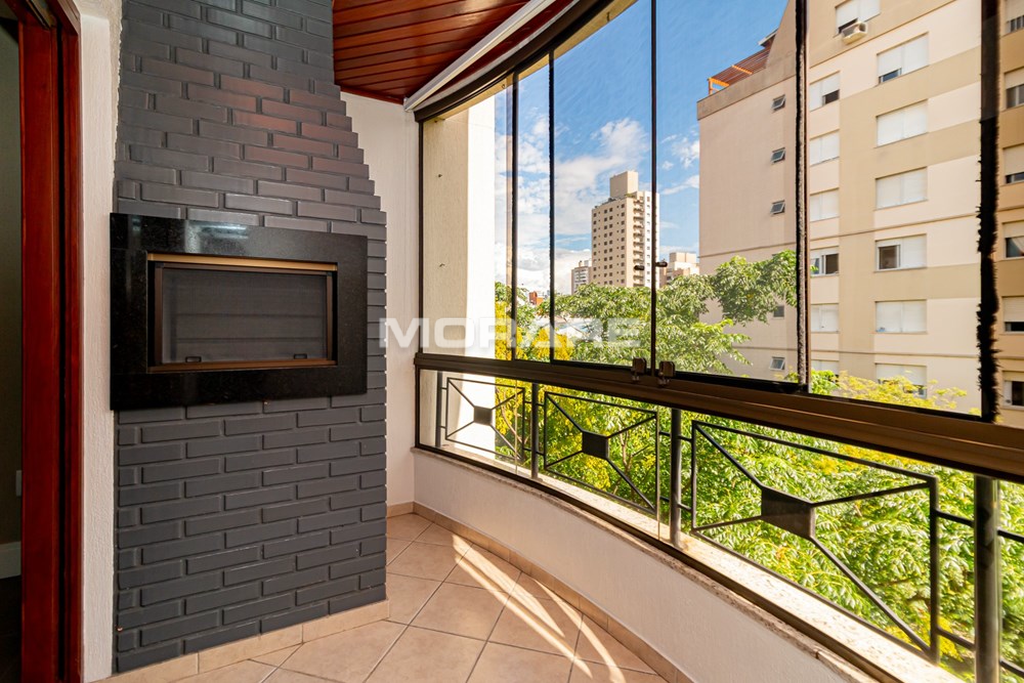 Apartamento desocupado, 2 dormitórios sendo um suíte, 88m2 privativos, living com sacada e churrasqueira, dormitório de casal com sacada, todos dormitórios com armários sob medida, cozinha montada com armários sob medida, fogão cooktop, forno, ficam 2 ar condicionados split, piso porcelanato em todo apartamento, de frente, orientação solar leste e vaga de garagem, prédio com elevador.