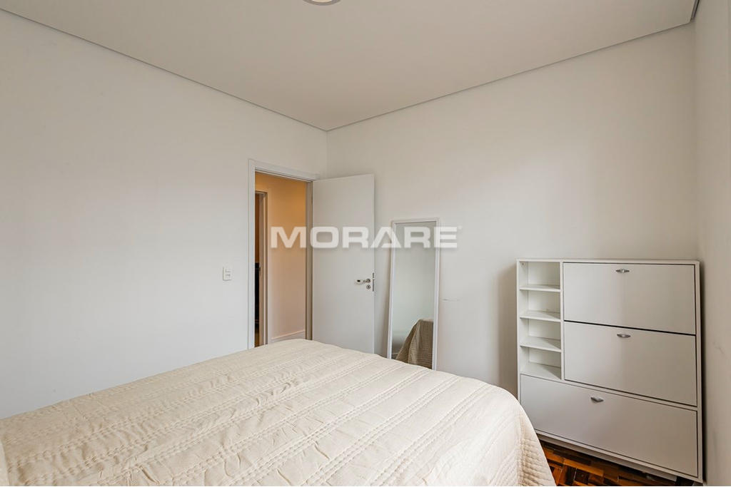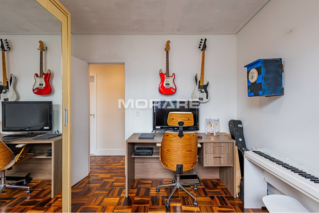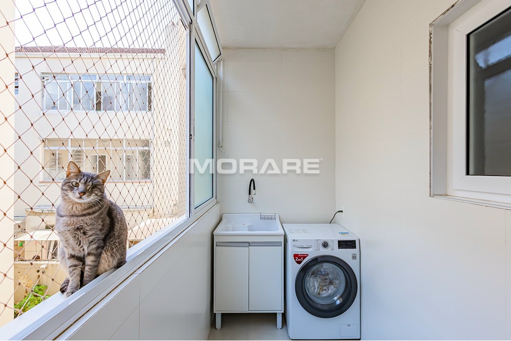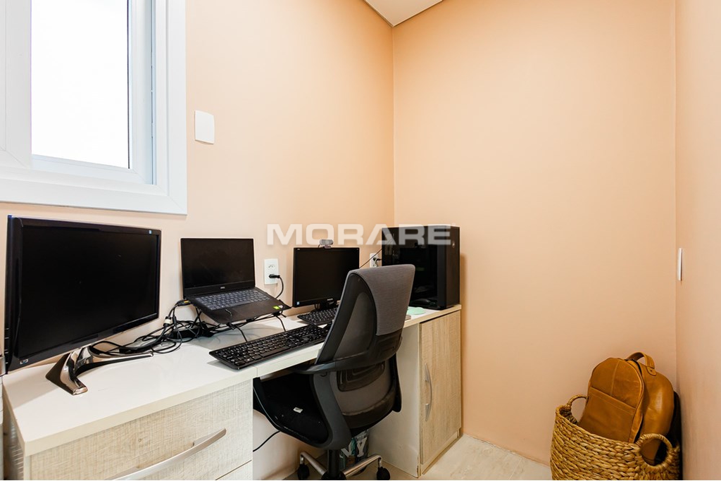 Esse apartamento com 76m² de área útil possui dois dormitórios e um escritório, passou por uma reforma completa, inclusive de elétrica e hidráulica. Oferece uma planta inteligente, com cozinha integrada ao living e um lavabo que atende à área social perfeito para quem valoriza praticidade e convívio no dia a dia. Conta ainda com um amplo banheiro social, também todo reformado, com duas cubas, que traz ainda mais conforto e funcionalidade para a rotina.