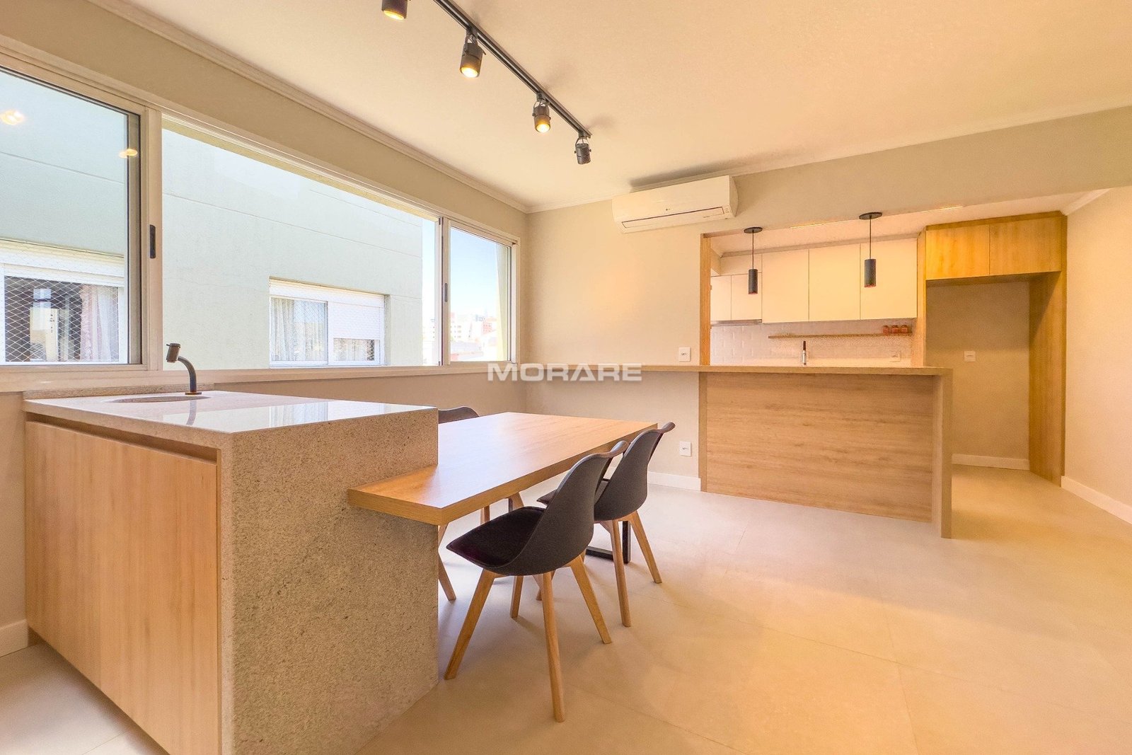 Com 76m² de área privativa, amplo living 2 ambientes, piso frio, com churrasqueira, mesa de jantar, split, banheiro social finamente decorado, cozinha montada e reformada com passa pratos, armários, fogão, coifa e área de serviço com aquecedor. Dormitórios com piso frio e suíte totalmente modernizada.