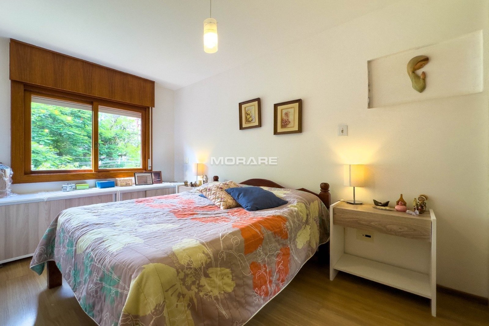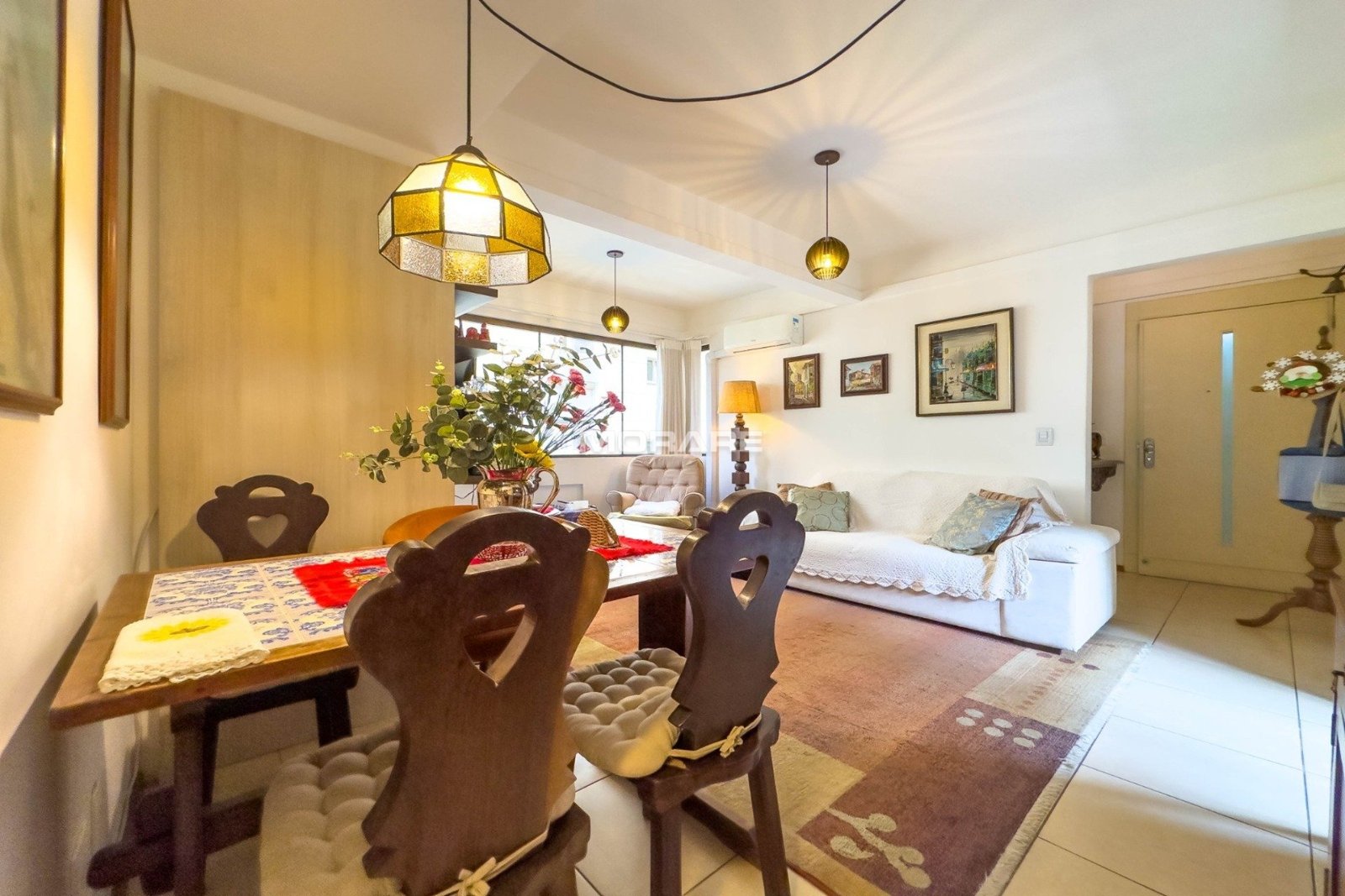 O imóvel conta com 2 dormitórios, living amplo para dois ambientes com churrasqueira, integrado à cozinha equipada com móveis planejados e eletrodomésticos, banheiro auxiliar e área de serviço separada. Possui ainda solário envidraçado, que proporciona ótima iluminação natural e uma agradável vista para a copa das árvores.