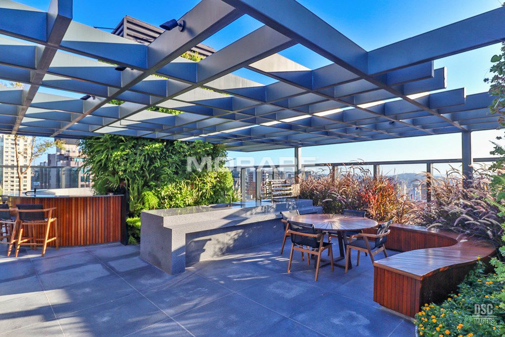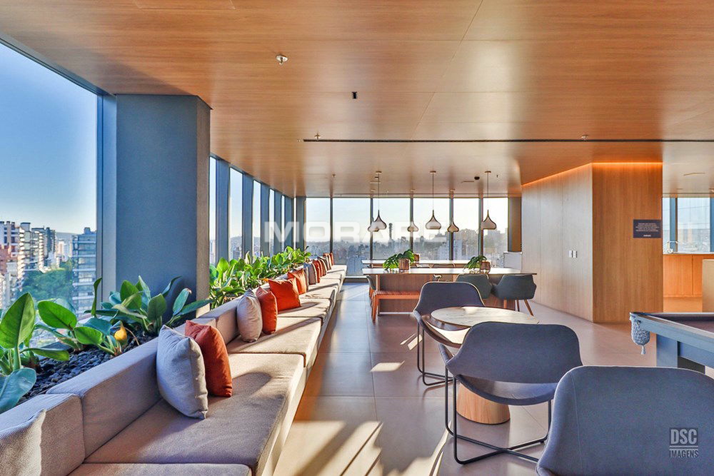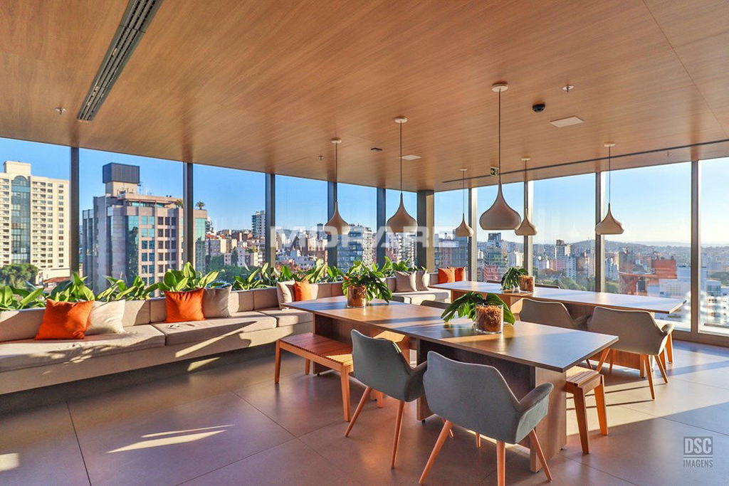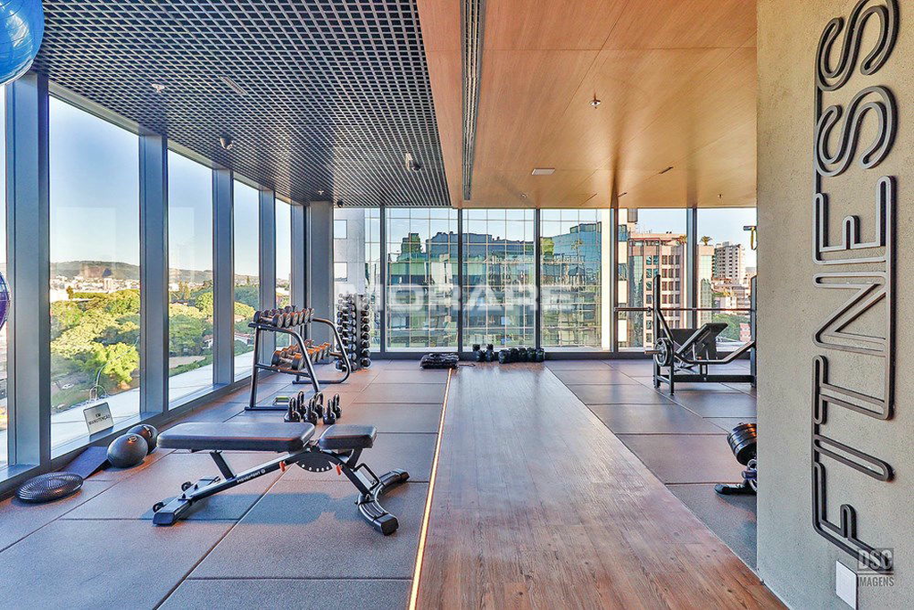 Rooftop com infra estrutura completa: piscina ao ar livre, com borda infinita, proporcionando excelente vista de Porto Alegre. Sala fitness toda equipada com equipamentos de musculação, esteiras, climatizada, televisores para o seu treino.