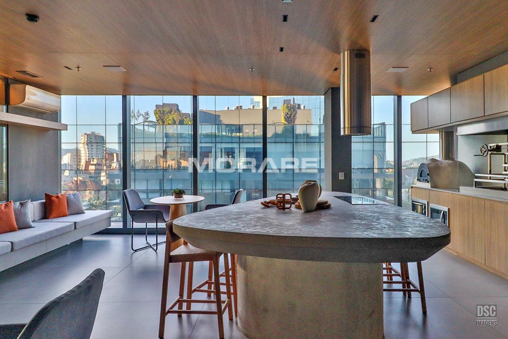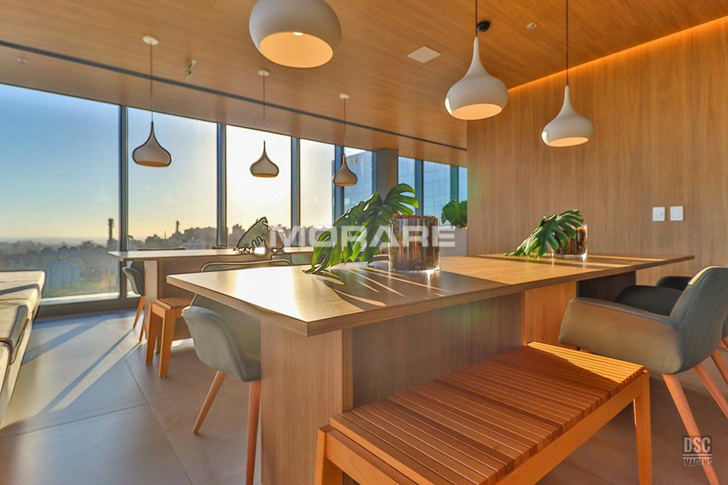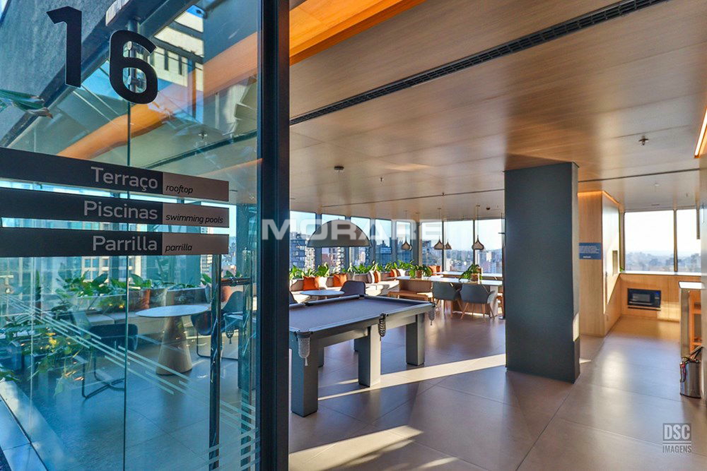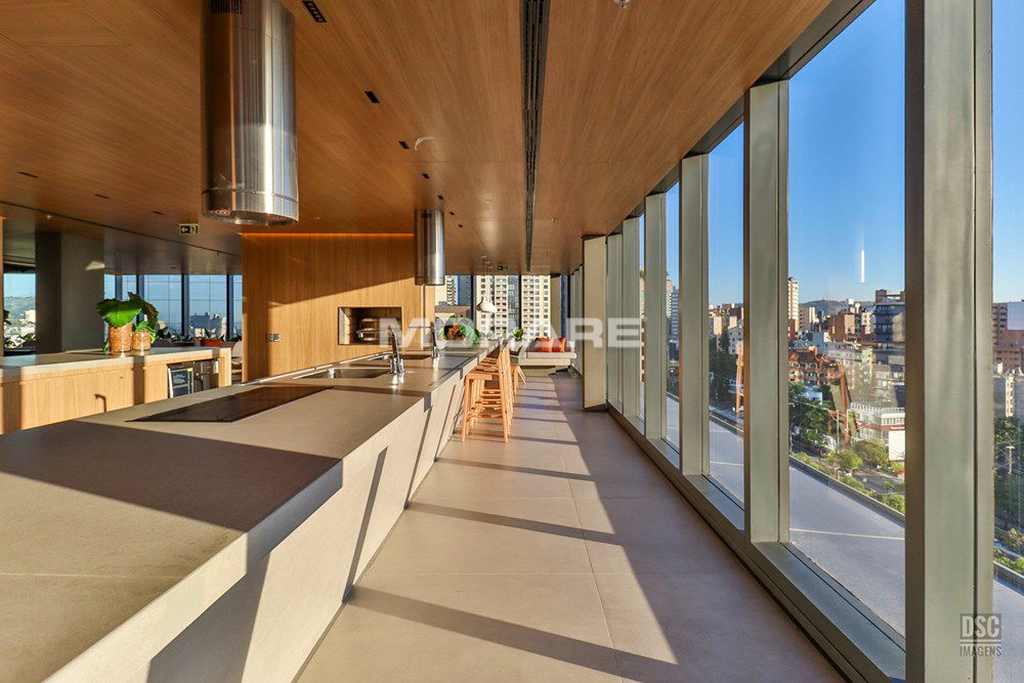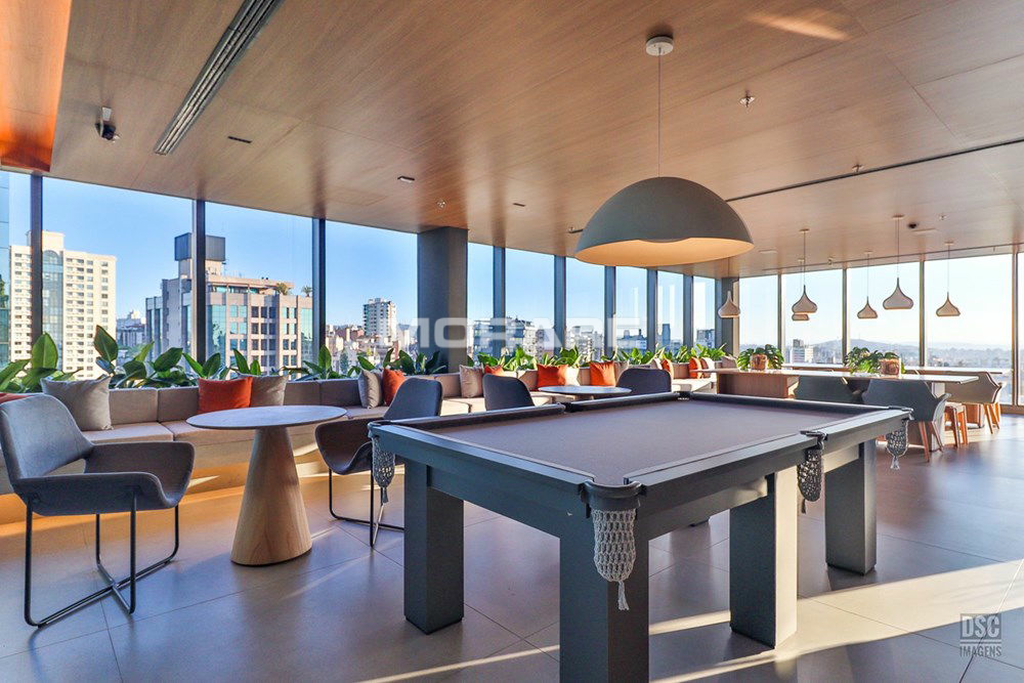 Rooftop com infra estrutura completa: piscina ao ar livre, com borda infinita, proporcionando excelente vista de Porto Alegre. Sala fitness toda equipada com equipamentos de musculação, esteiras, climatizada, televisores para o seu treino.