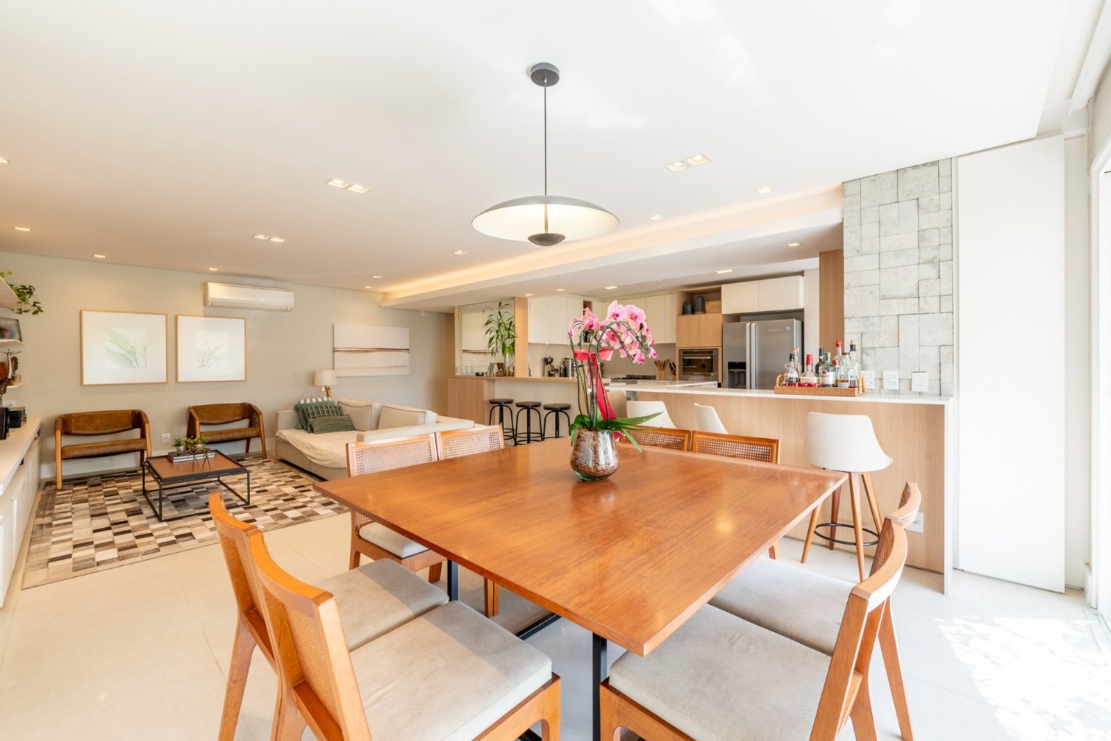 Área privativa de 133m², de fundos, com excelente iluminação e ventilação natural, 3 dormitórios, sendo 1 suíte com espaço para closet, amplo living de 2 ambientes, proporcionando sofisticação e conforto, churrasqueira integrada, ideal para reunir família e amigos, copa-cozinha espaçosa e funcional, lavabo para maior comodidade, banheiro auxiliar, mobiliado com móveis de primeira qualidade.